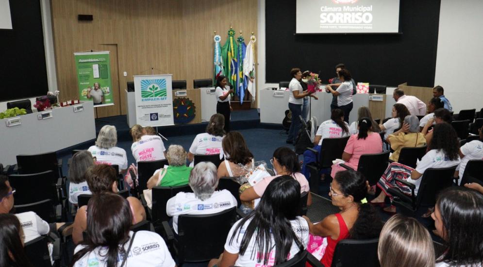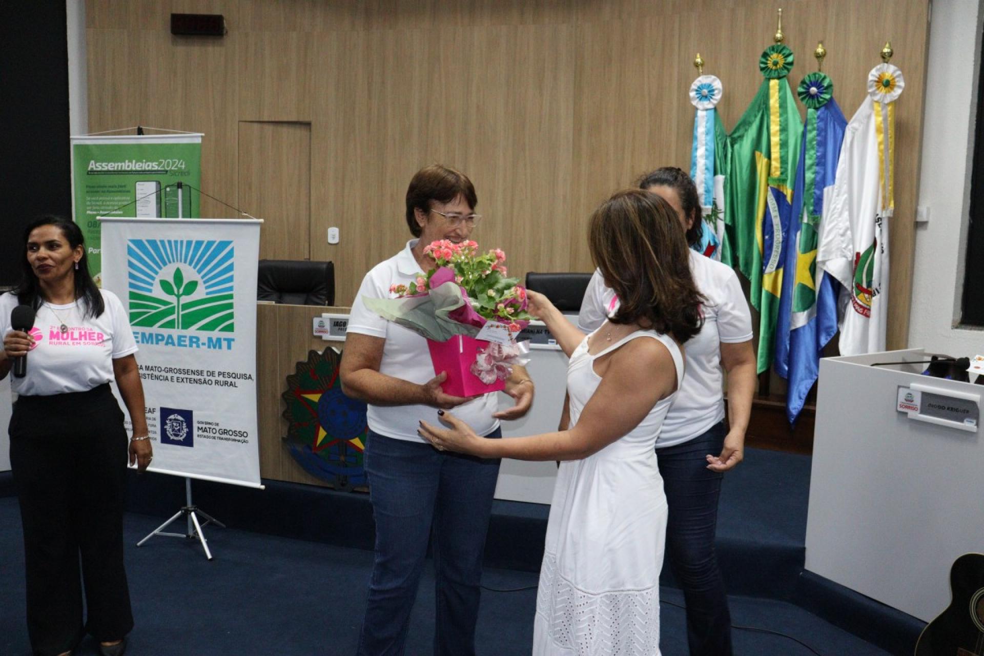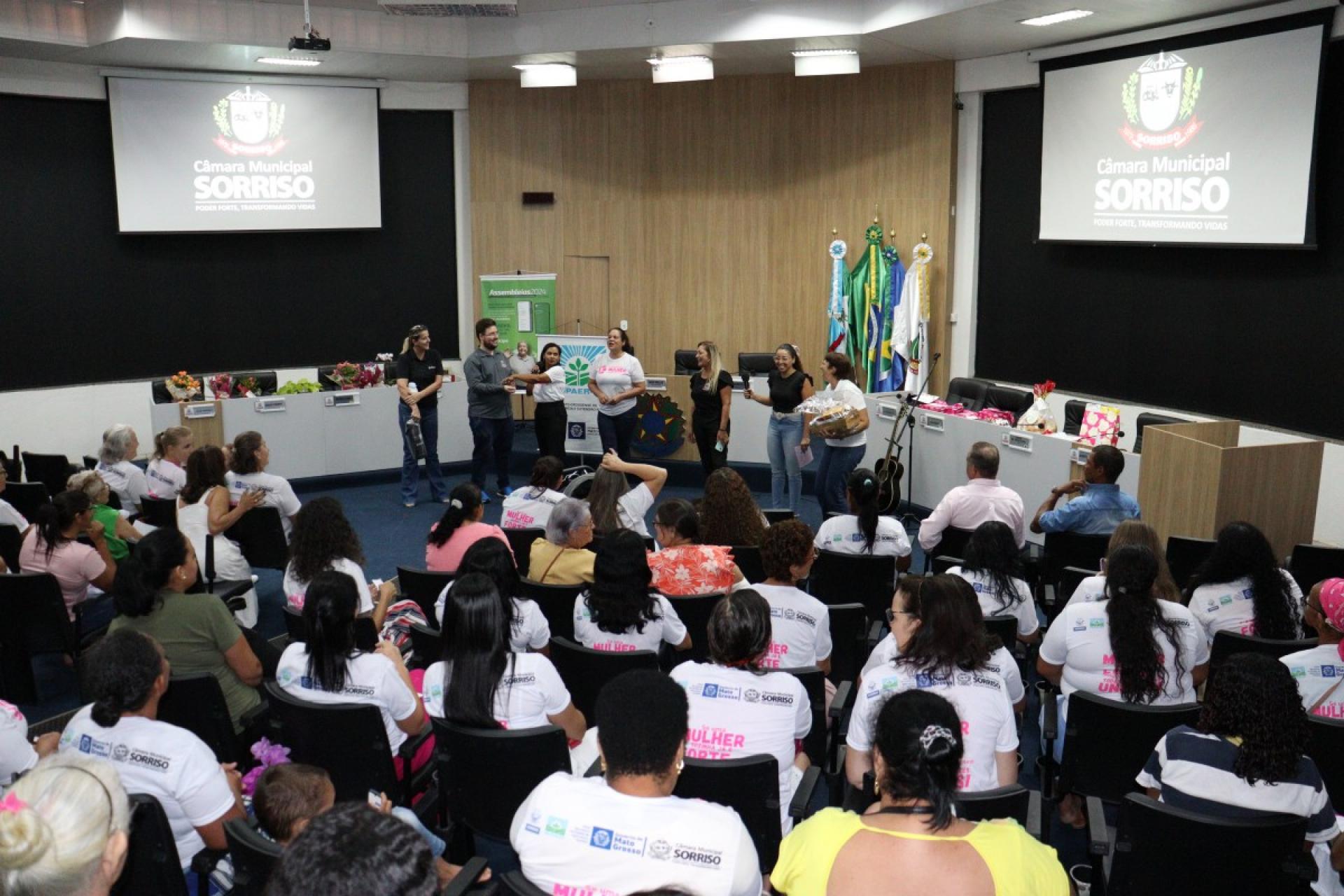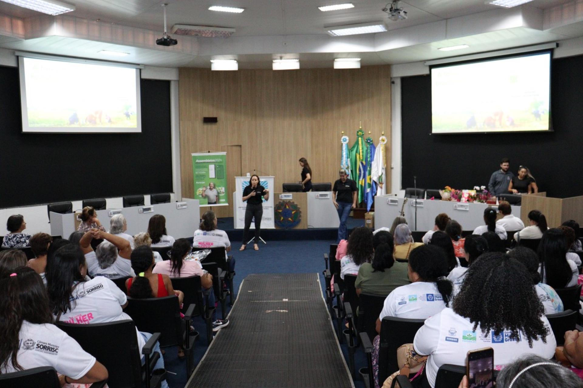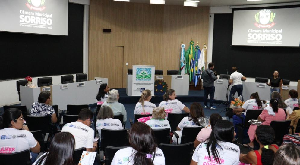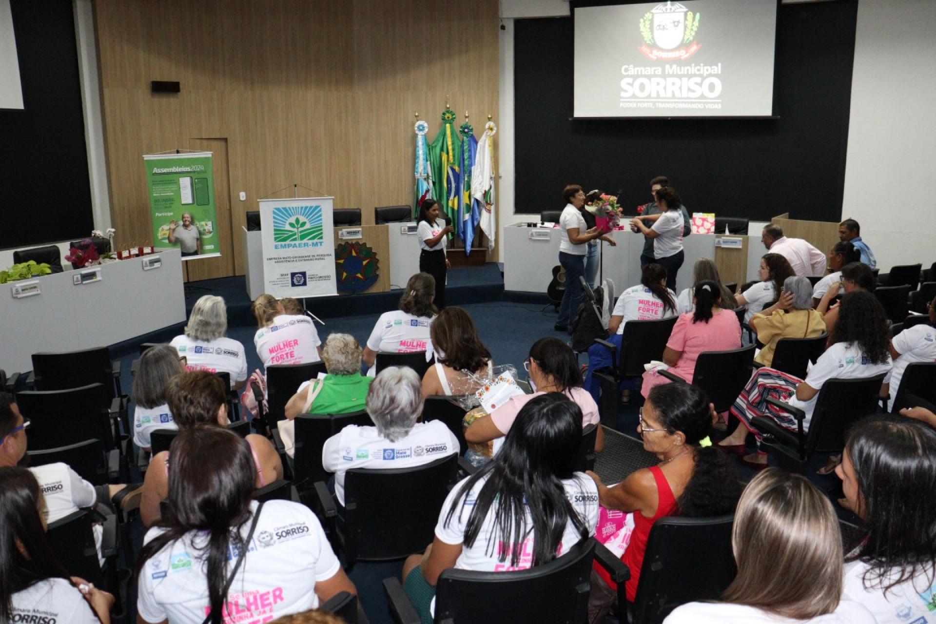 Ao todo, 109 mulheres tiveram uma tarde especial, onde participaram do 2º Encontro da Mulher Rural de Produtiva realizado na última sexta-feira (22), pela Câmara Municipal de Sorriso e que foi organizado pela vereadora licenciada, Jane Delalibera e vereadora, Márcia Cordeiro com apoio da Empaer – MT e Sicredi Celeiro.