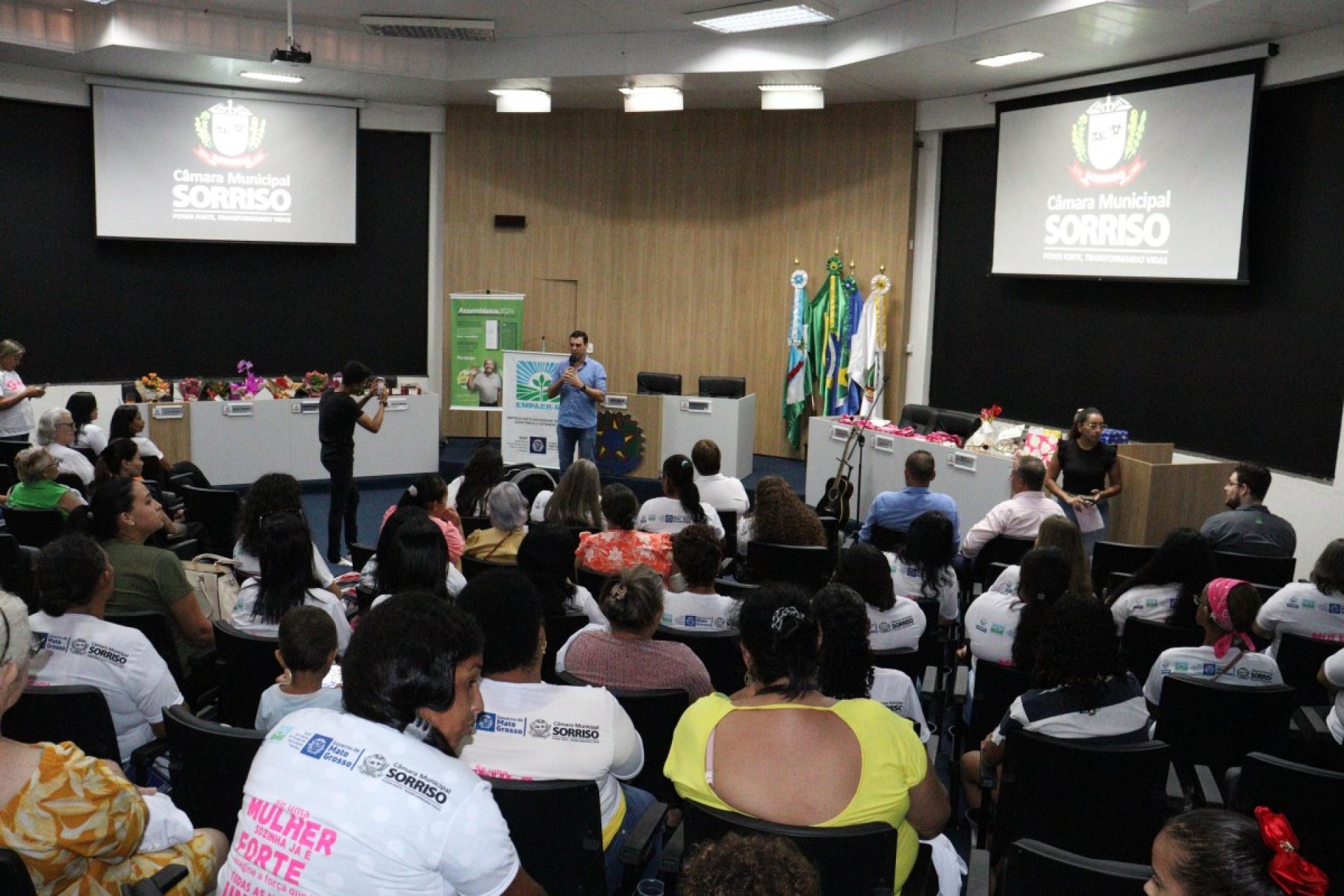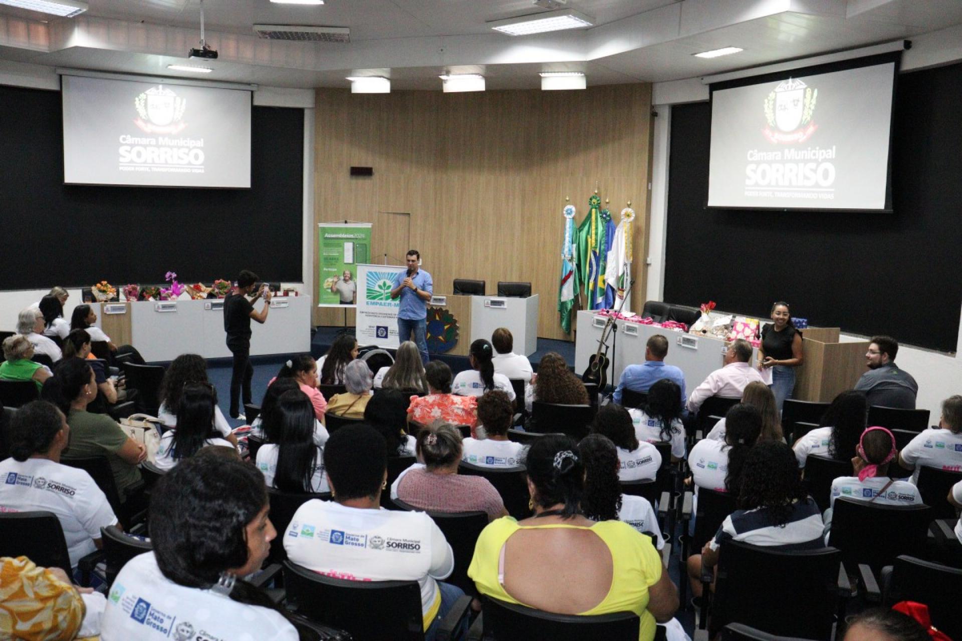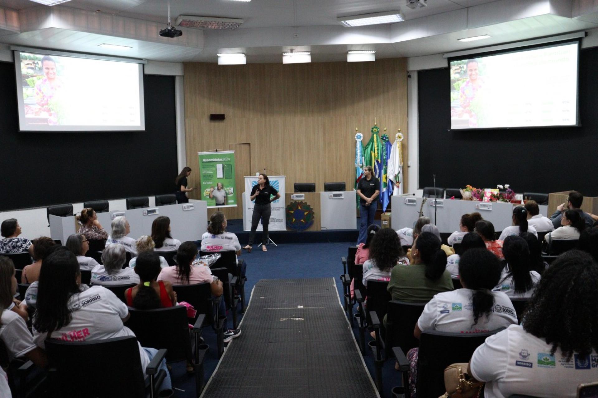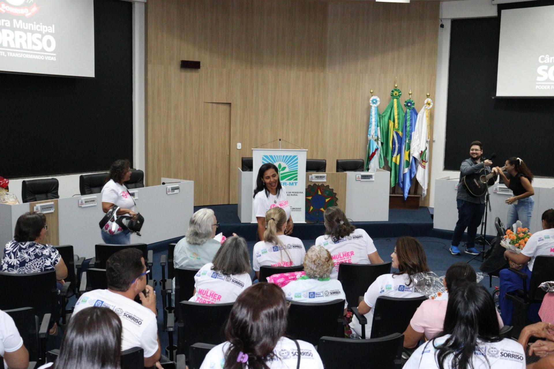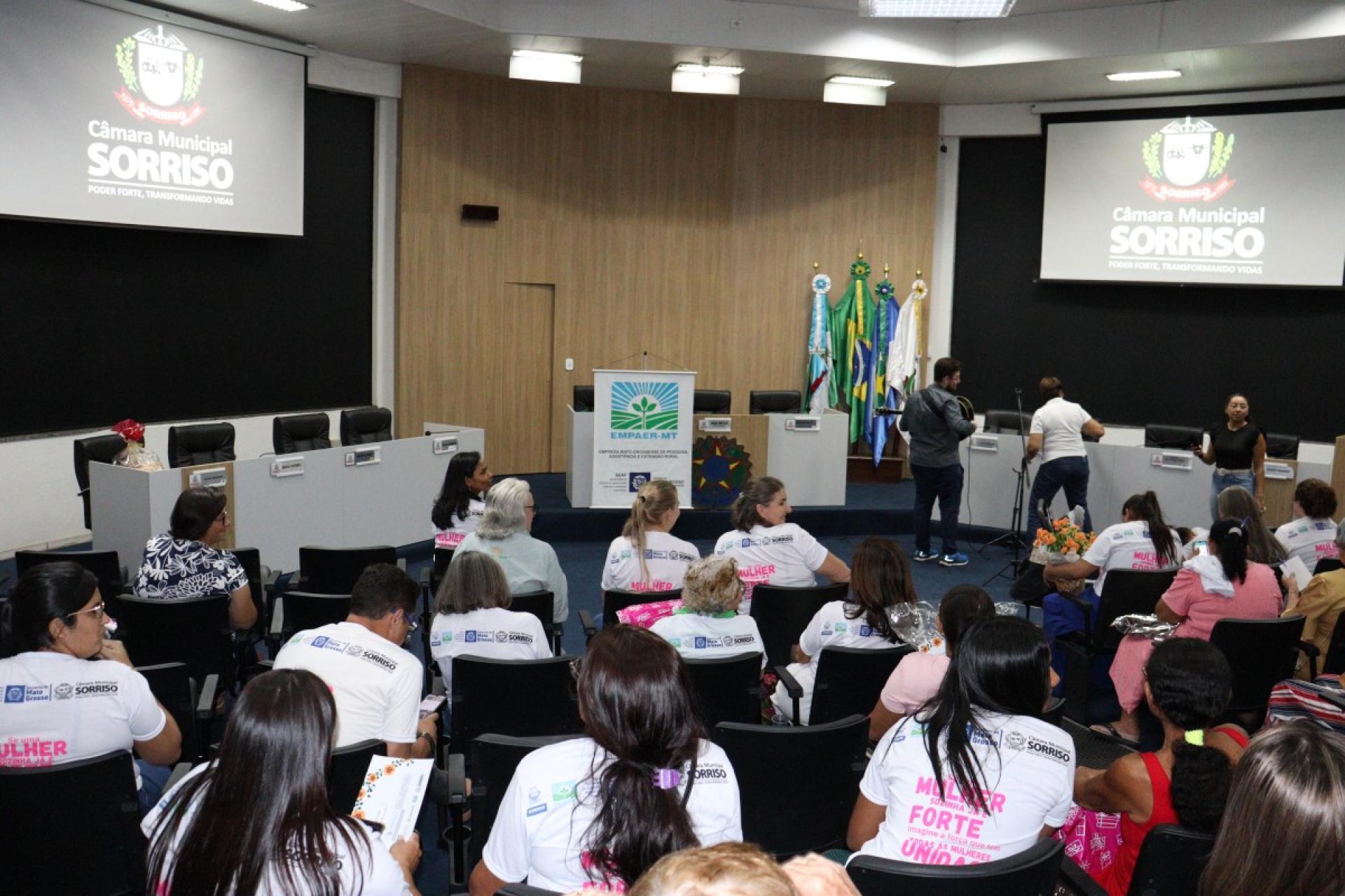 Ao todo, 109 mulheres tiveram uma tarde especial, onde participaram do 2º Encontro da Mulher Rural de Produtiva realizado na última sexta-feira (22), pela Câmara Municipal de Sorriso e que foi organizado pela vereadora licenciada, Jane Delalibera e vereadora, Márcia Cordeiro com apoio da Empaer – MT e Sicredi Celeiro.