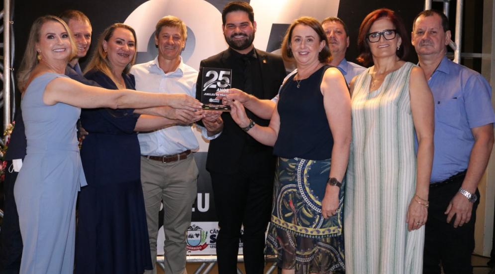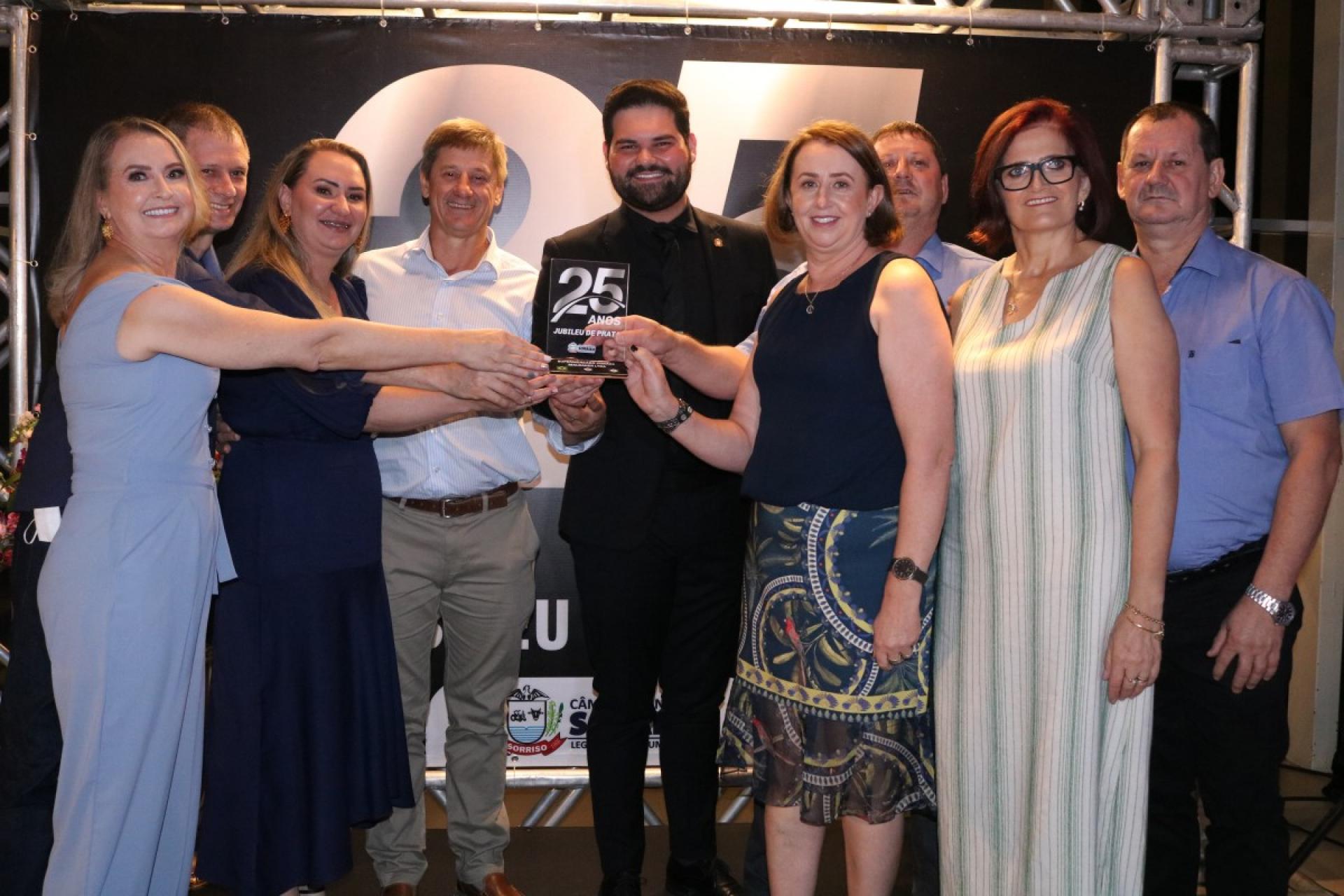 A noite especial de 09 de dezembro foi marcada com mais uma entrega da honraria “Jubileu de Prata” realizada pela Câmara Municipal de Sorriso, seguindo Projeto de Resolução nº 02 de 1º de março de 2016.