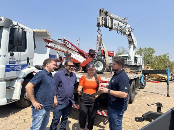 Na manhã desta quinta-feira, 2, os vereadores e o secretário municipal de Agricultura Familiar e Segurança Alimentar, Lucas Oliveira, estiveram na Central de Bens da SEAF para assinarem o termo de cessão de uso do maquinário. Eles foram recebidos pela coordenadora de Patrimônio, Dayana Cardoso.