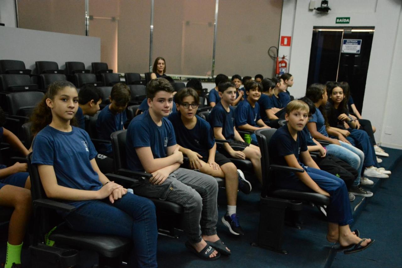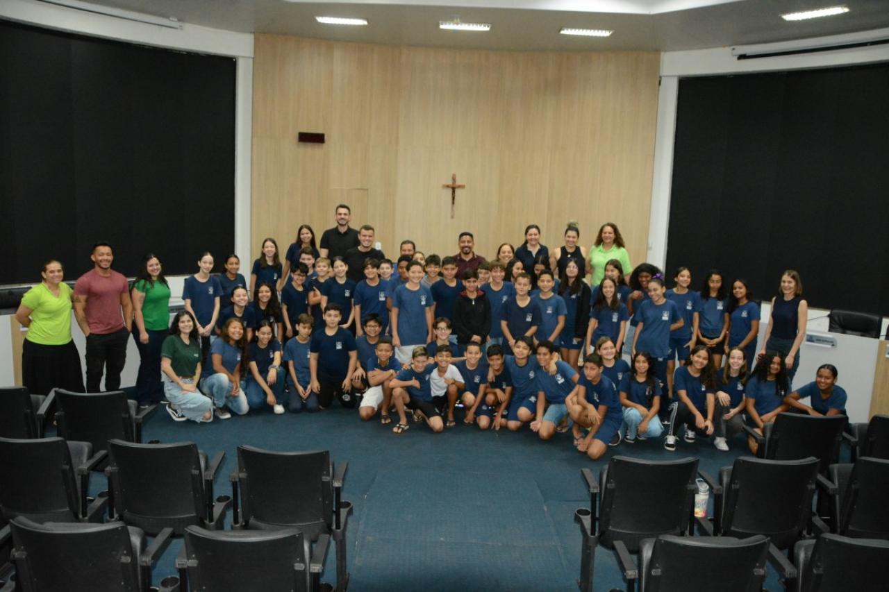Cerca de 60 alunos do 6º ano da Escola Municipal Aureliano Pereira da Silva participaram na manhã de hoje (1º), do programa “Por dentro do Parlamento”. Os estudantes foram recebidos pelo presidente da Casa, Rodrigo Matterazzi, e pelos vereadores Diogo Kriguer, Emerson Farias, Jane Delalibera e Prof.ª Silvana. Eles conheceram a história do parlamento e as dependências da Câmara Municipal.