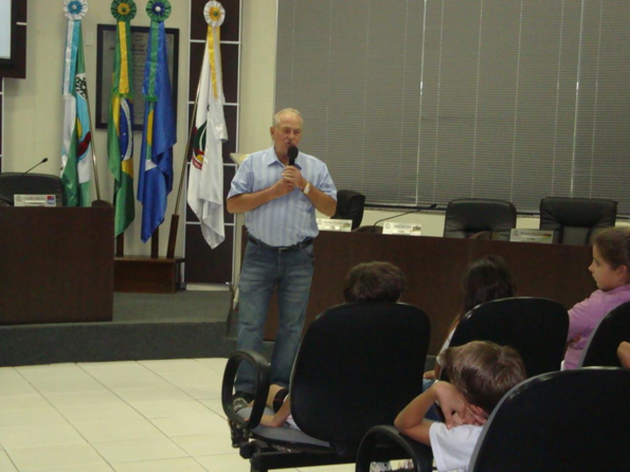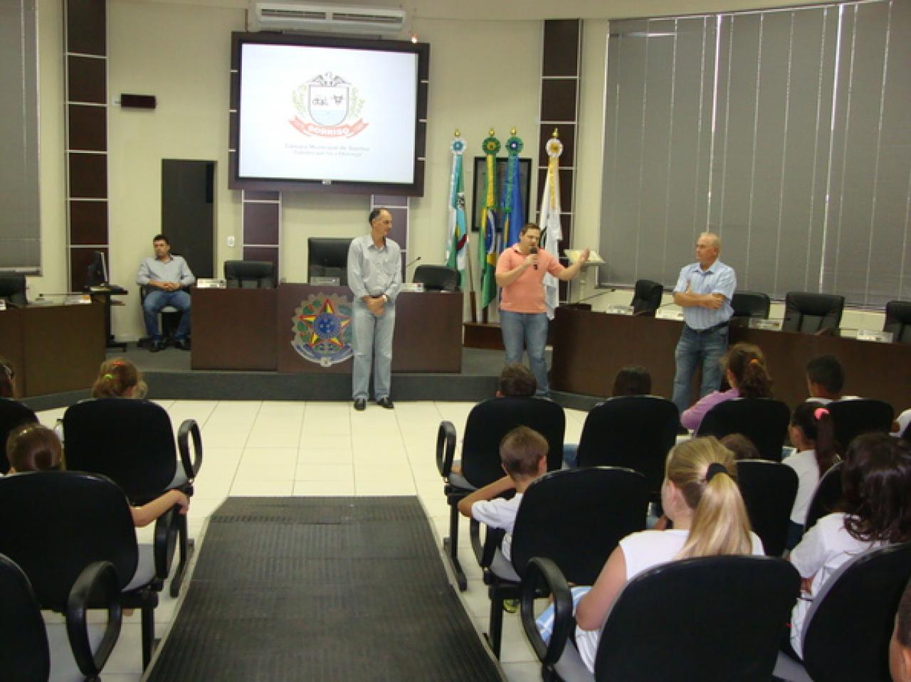 Os alunos foram recebidos pelos coordenadores do projeto e pelo vereador Vergilio Dalsóquio(PPS). O primeiro presidente do Poder Legislativo sorrisense, ex-vereador Laurindo Koch, também esteve presente.
