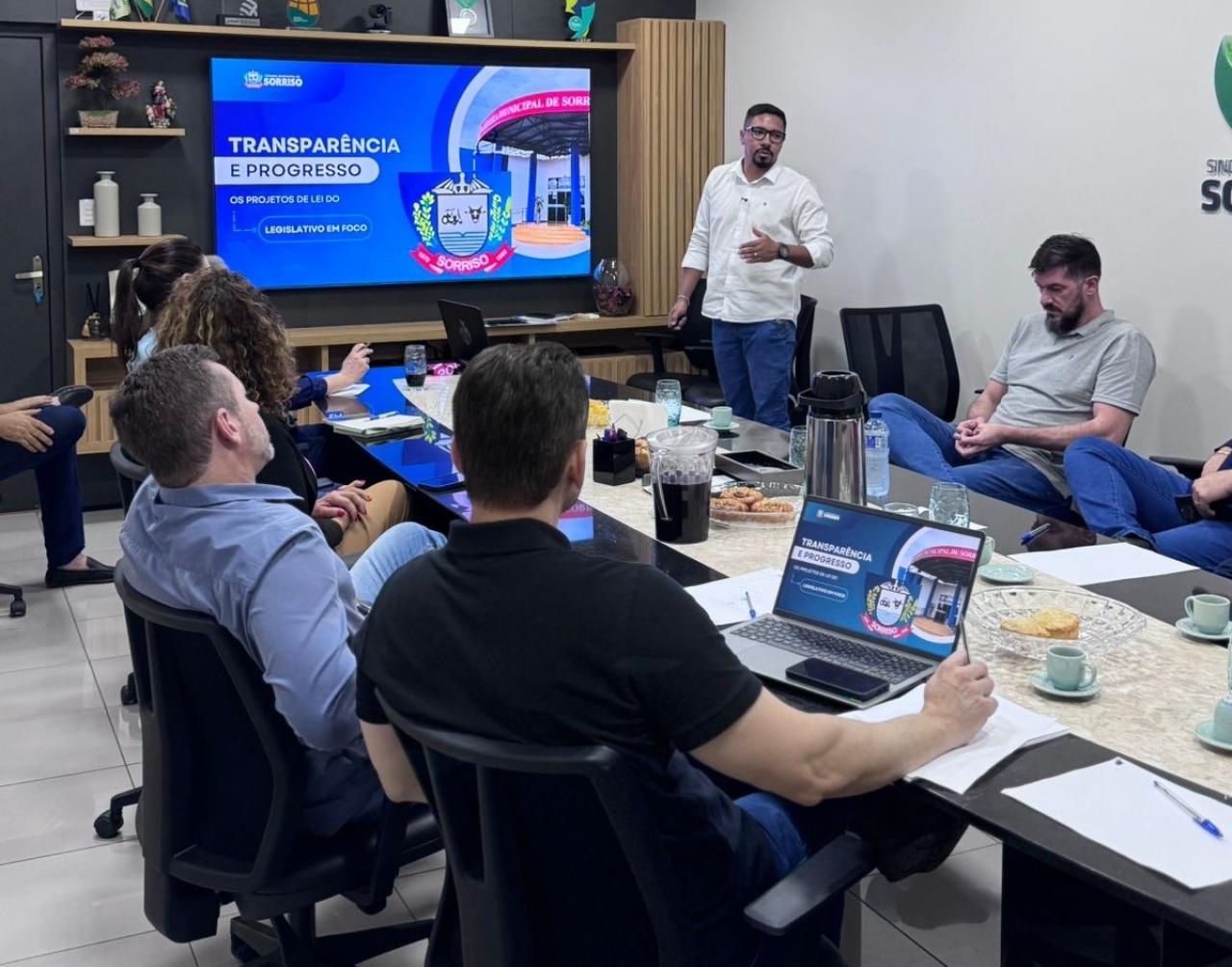 Em reunião no Sindicato Rural de Sorriso, o presidente da Câmara Municipal de Sorriso, vereador Rodrigo Matterazzi (Republicanos), apresentou nessa terça-feira, 29, um balanço dos trabalhos legislativos do 1° semestre deste ano abordando a atuação dos parlamentares e das ações institucionais e administrativas.