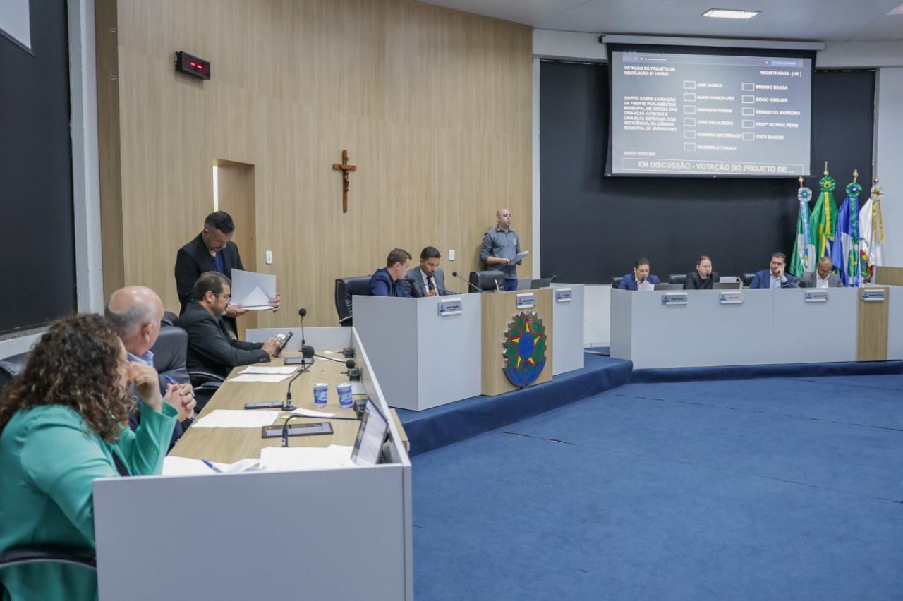 Durante a 39ª Sessão Ordinária, realizada nesta sexta-feira, 14, os vereadores aprovaram, por unanimidade e em única discussão, os Projetos de Resolução 15/2025 e 16/2025 que criam frentes parlamentares.