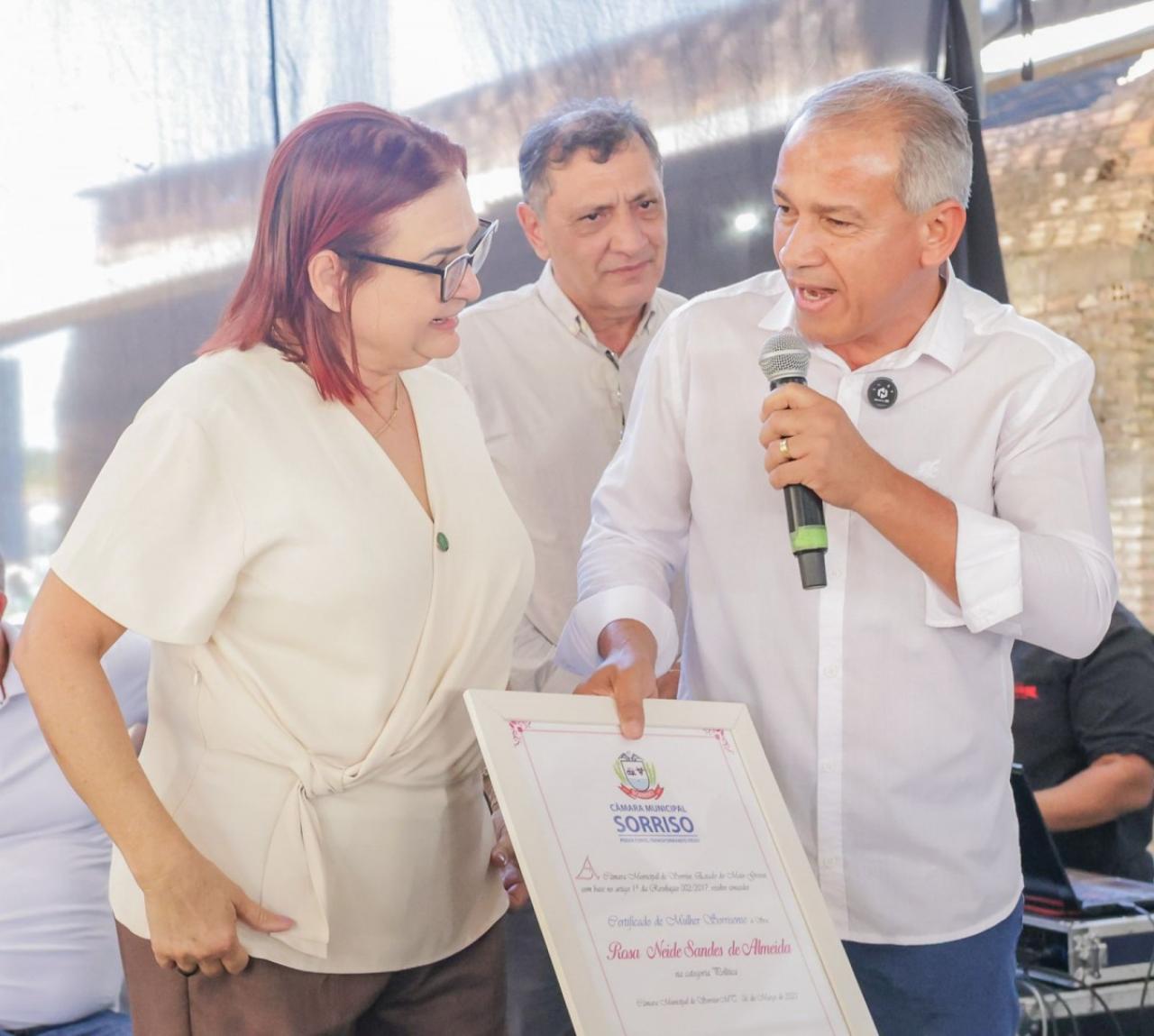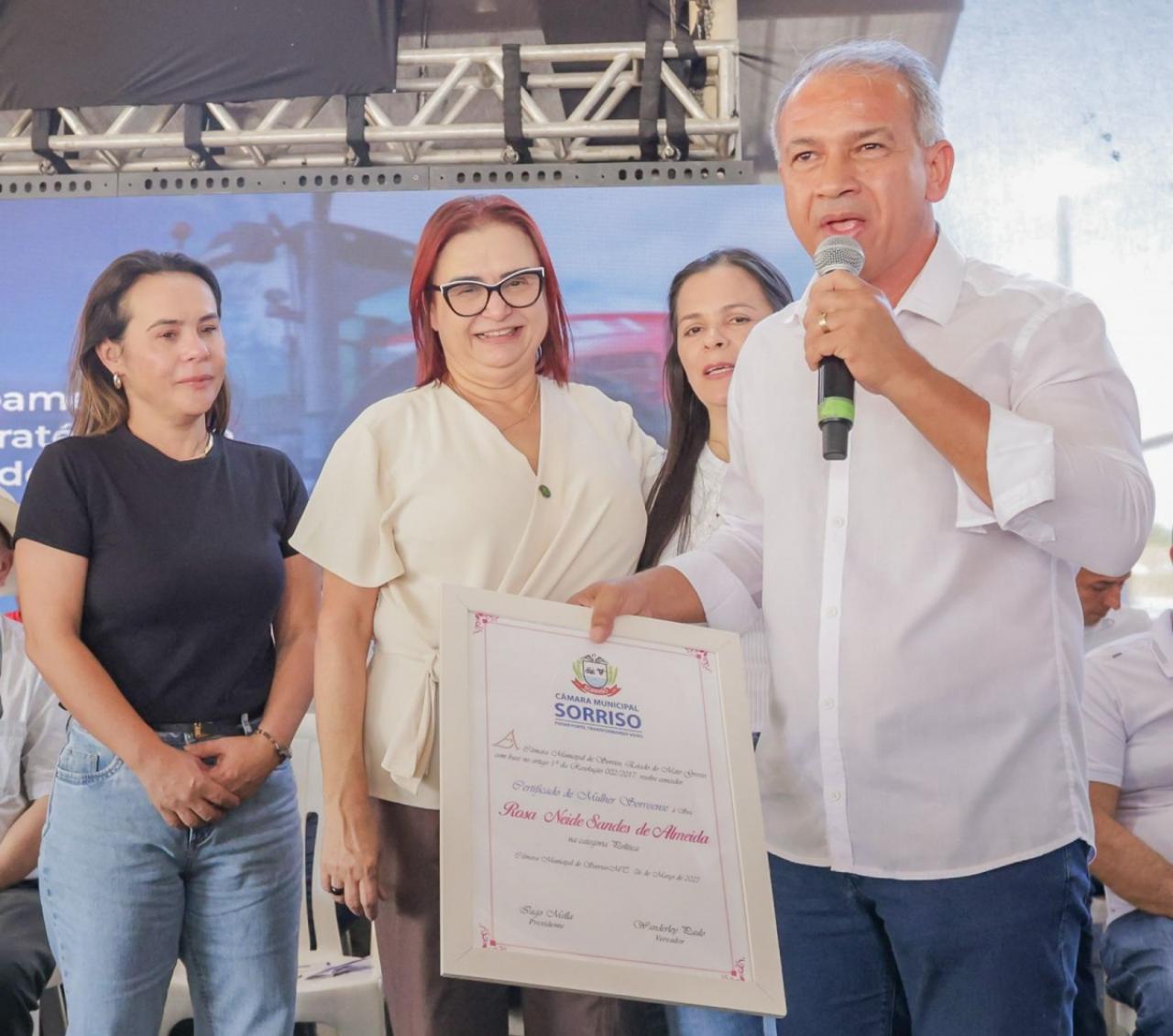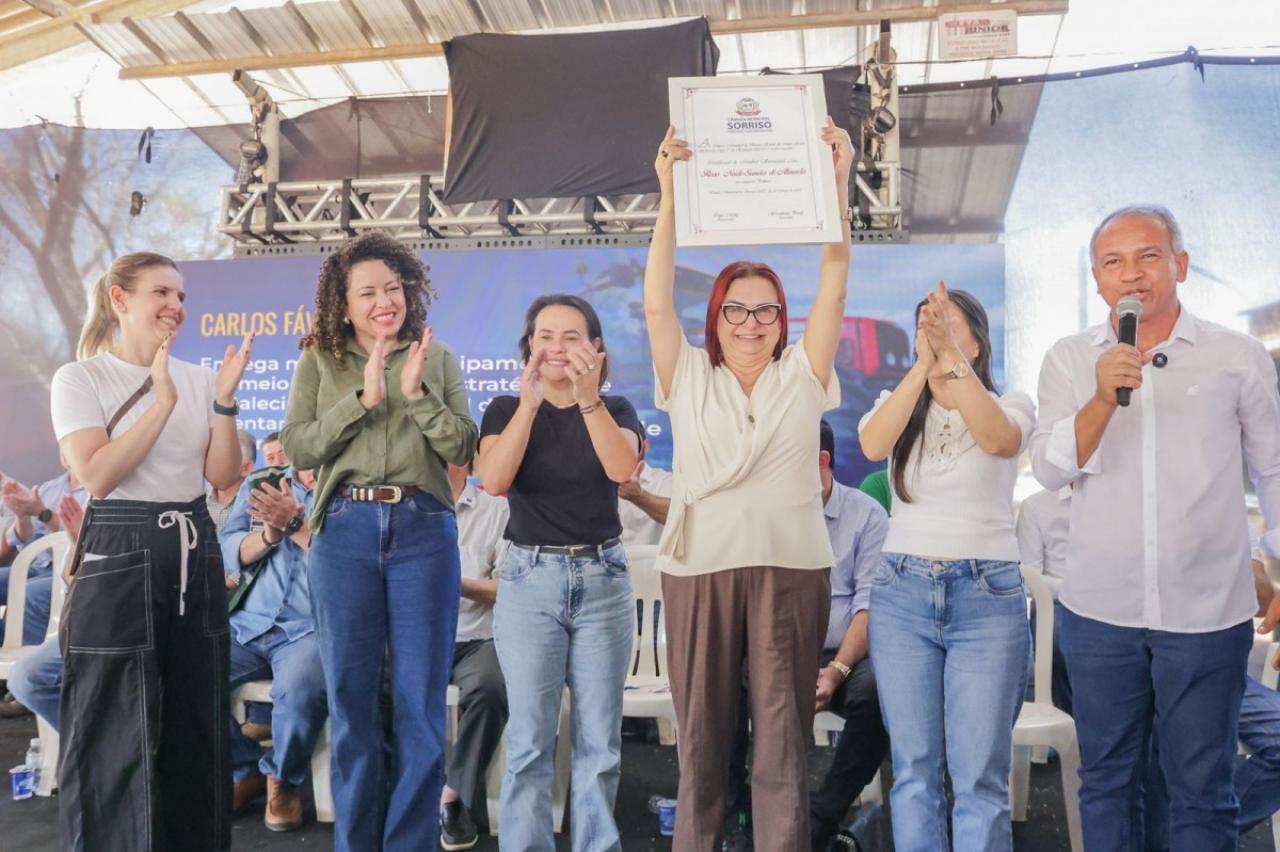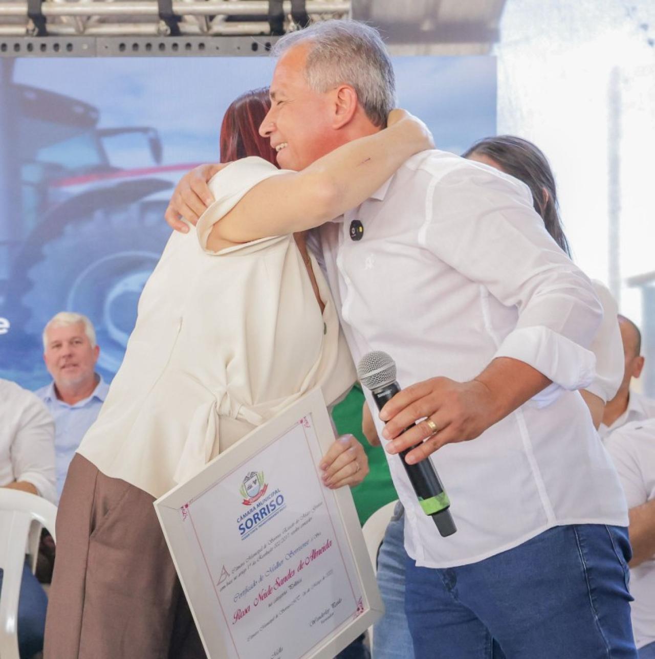 Além do ministro, foi homenageada a diretora da CONAB, Rosa Neide, com o título "Mulher Sorrisense", reconhecida por sua luta contra a fome e pelo fortalecimento da agricultura familiar.