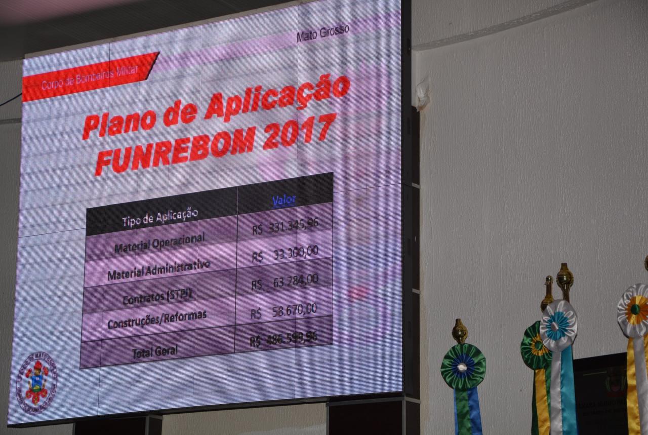 Capitão Weber finalizou a apresentação, com demonstrativo do trabalho operacional dos bombeiros militares, com os problemas que a companhia enfrenta, bem como as soluções destes com a utilização do FUNREBOM para solucionar grande parte destes problemas. Atualmente o fundo contém cerca de R$ 483 mil reais em caixa, os quais serão utilizados para o melhoramento operacional da unidade militar.