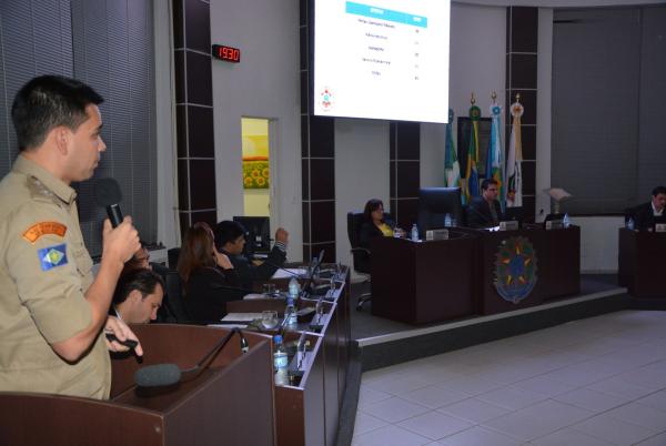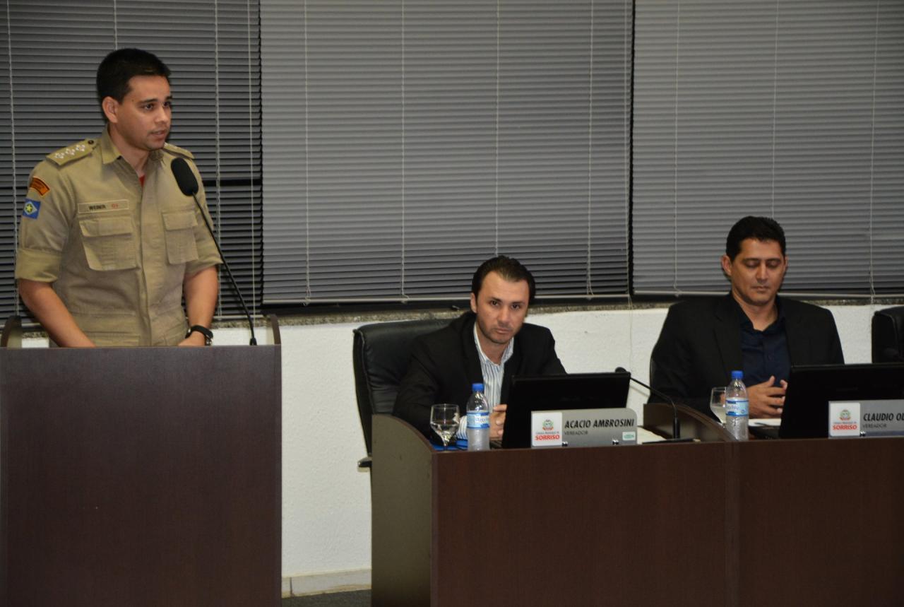 Durante a 3ª sessão ordinária, o Capitão dos Bombeiros Militar, Comandante da 10ª CIBM/MT – Cidade de Sorriso, Senhor Weber Dionísio Batista Junior, apresentou as ações da Companhia Alves Daroit para o ano de 2017 aos vereadores e comunidade.