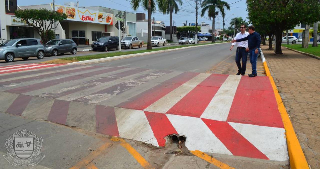A Secretaria Municipal de Obras e Serviços Públicos iniciou neste mês a construção de faixas elevadas de pedestres em Sorriso.
