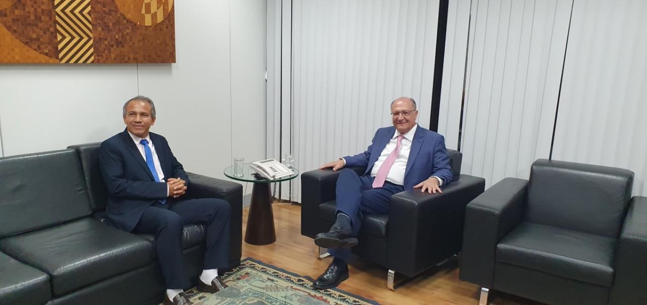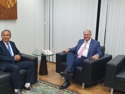 Fechando a agenda em Brasília, o vereador Wanderley Paulo se reuniu na tarde de hoje (19), com o vice-presidente e Ministro do Desenvolvimento, Indústria, Comércio e Serviços, Geraldo Alckimin, a agroindustrialização e a ferrogrão que tem como objetivo atender os Estados de Mato Grosso e Pará foram temas da reunião.