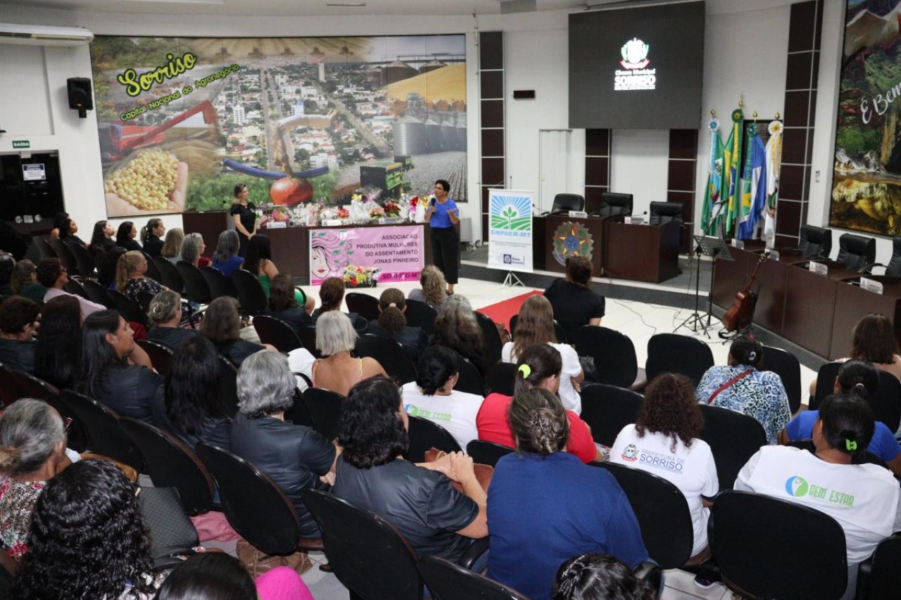 Organizado pela Câmara de Sorriso e Empaer, o evento foi realizado no Plenário da Câmara com diversas atrações como sorteio de brindes, apresentação musical, coquetel e uma palestra com a diretora da Empaer/MT, Denise Gutierres sobre Empoderamento Feminino.
