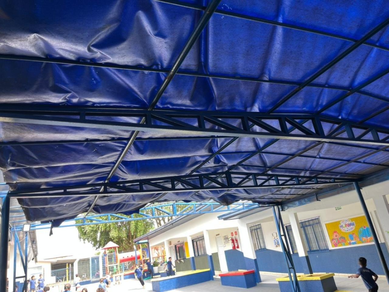 Conforme o parlamentar, a cobertura existente está quebrada e rasgada. “O ideal seria a instalação de uma cobertura fixa, porém a escola utiliza o toldo como alternativa para atender a demanda”, frisa Darci.