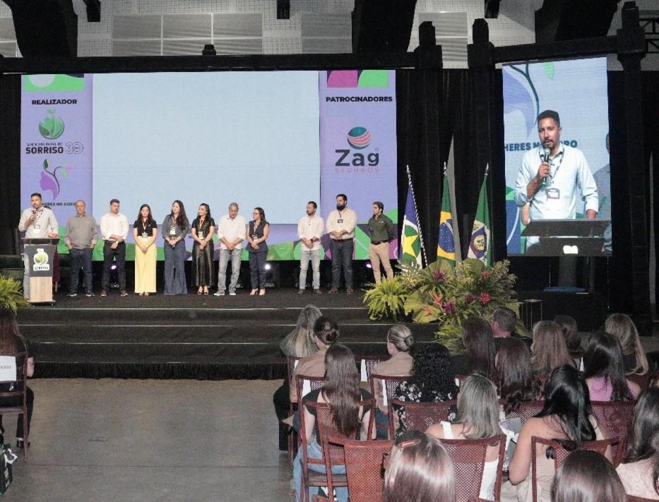 O presidente da Câmara de Sorriso, vereador Rodrigo Matterazzi (Republicanos), representando o legislativo sorrisense, prestigiou a abertura da 4ª edição do Mulheres no Agro Conexão, realizada em Sorriso nessa quarta-feira, 14. O encontro, promovido pelo Sindicato Rural do município com o apoio da Associação dos Produtores de Soja e Milho de Mato Grosso (Aprosoja MT), abordou temas como o papel da mulher como líder transformadora no campo e nas organizações, gestão de pessoas mais consciente, sustentabilidade, comunicação assertiva e escuta ativa no campo, e inteligência financeira.