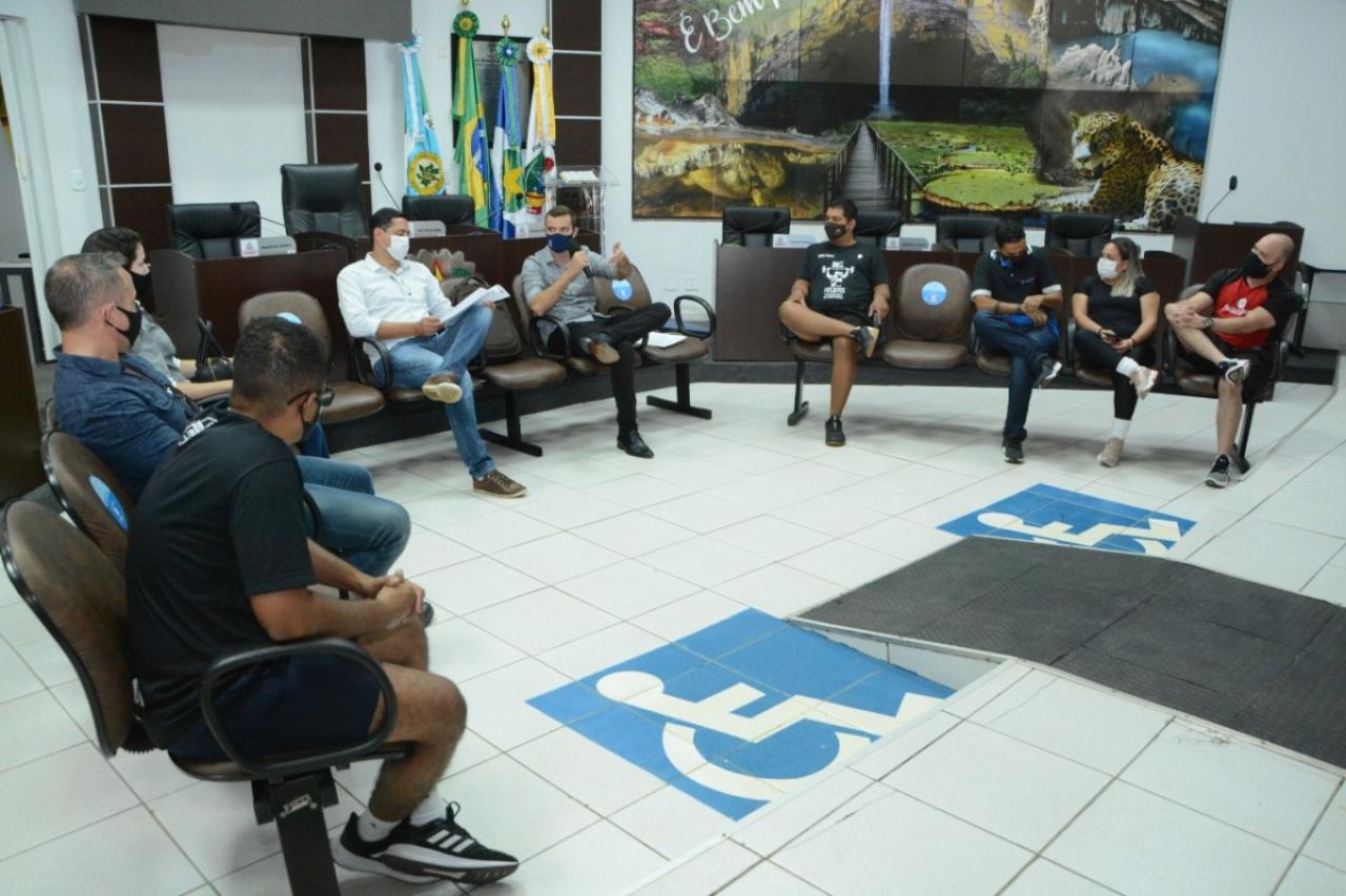O vereador Diogo Kriguer (PSDB) convocou uma reunião na tarde desta sexta-feira (29), com o secretário Municipal de Desenvolvimento Econômico, Cláudio Oliveira, secretário adjunto de Administração, Bruno Delgado e representantes de academias do município, para que o Executivo elabore uma lei onde torna essencial os estabelecimentos de serviços de educação física públicos ou privados como forma de prevenir doenças físicas e mentais, além da prática de atividade e exercício físico.