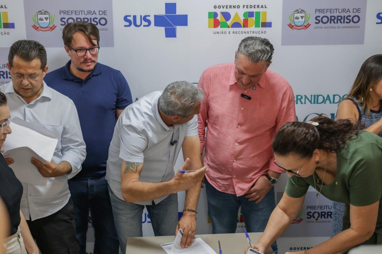 Nesta segunda-feira (11), vereadores participaram da cerimônia de assinatura do convênio entre a Prefeitura e o Instituto de Gestão Hospitalar e Assistência à Saúde do Estado do Mato Grosso (IGHAS-MT) para a implantação da Maternidade Amor de Mãe e do Hospital da Mulher, vinculados ao Hospital Nossa Senhora de Fátima.