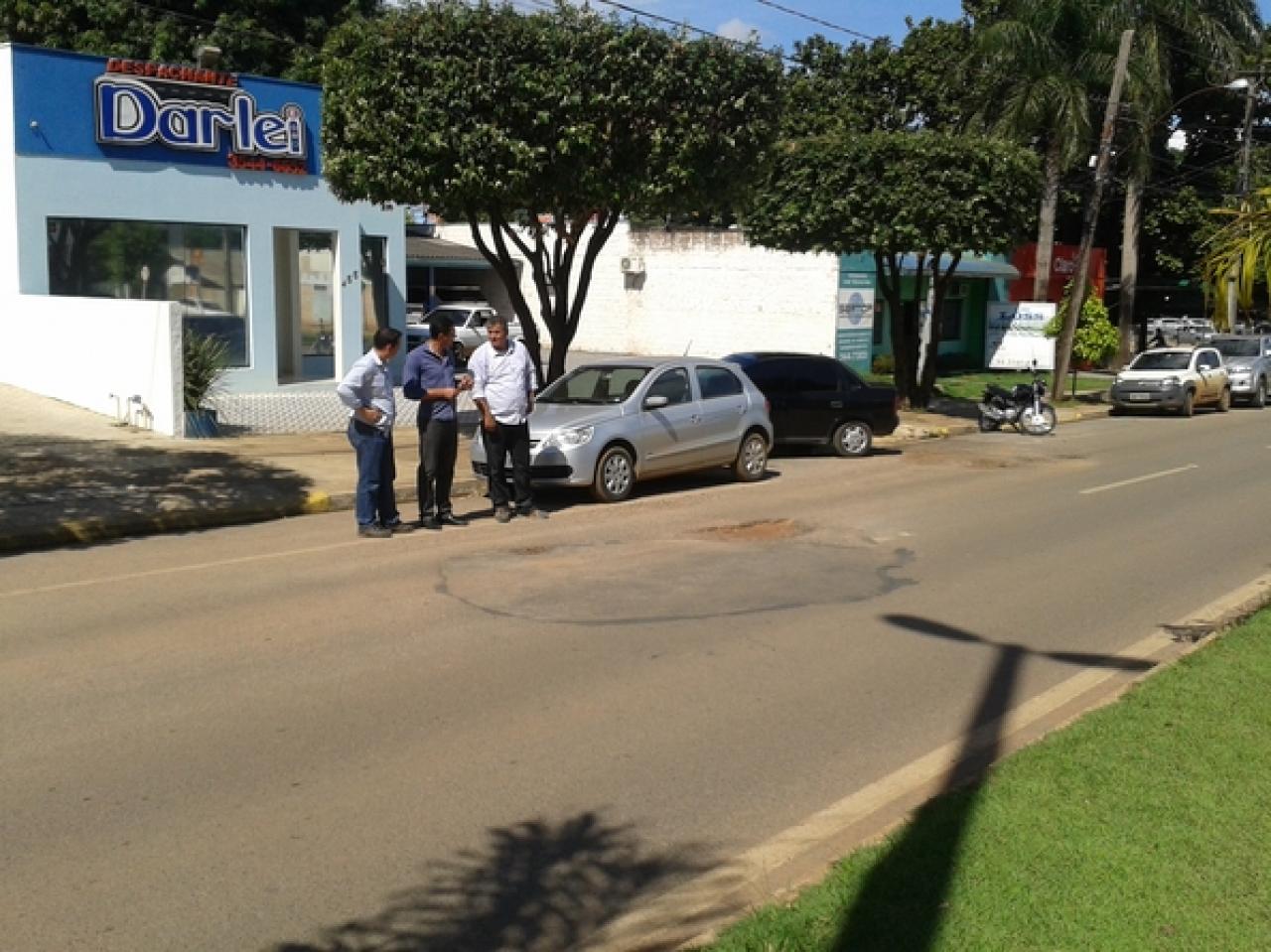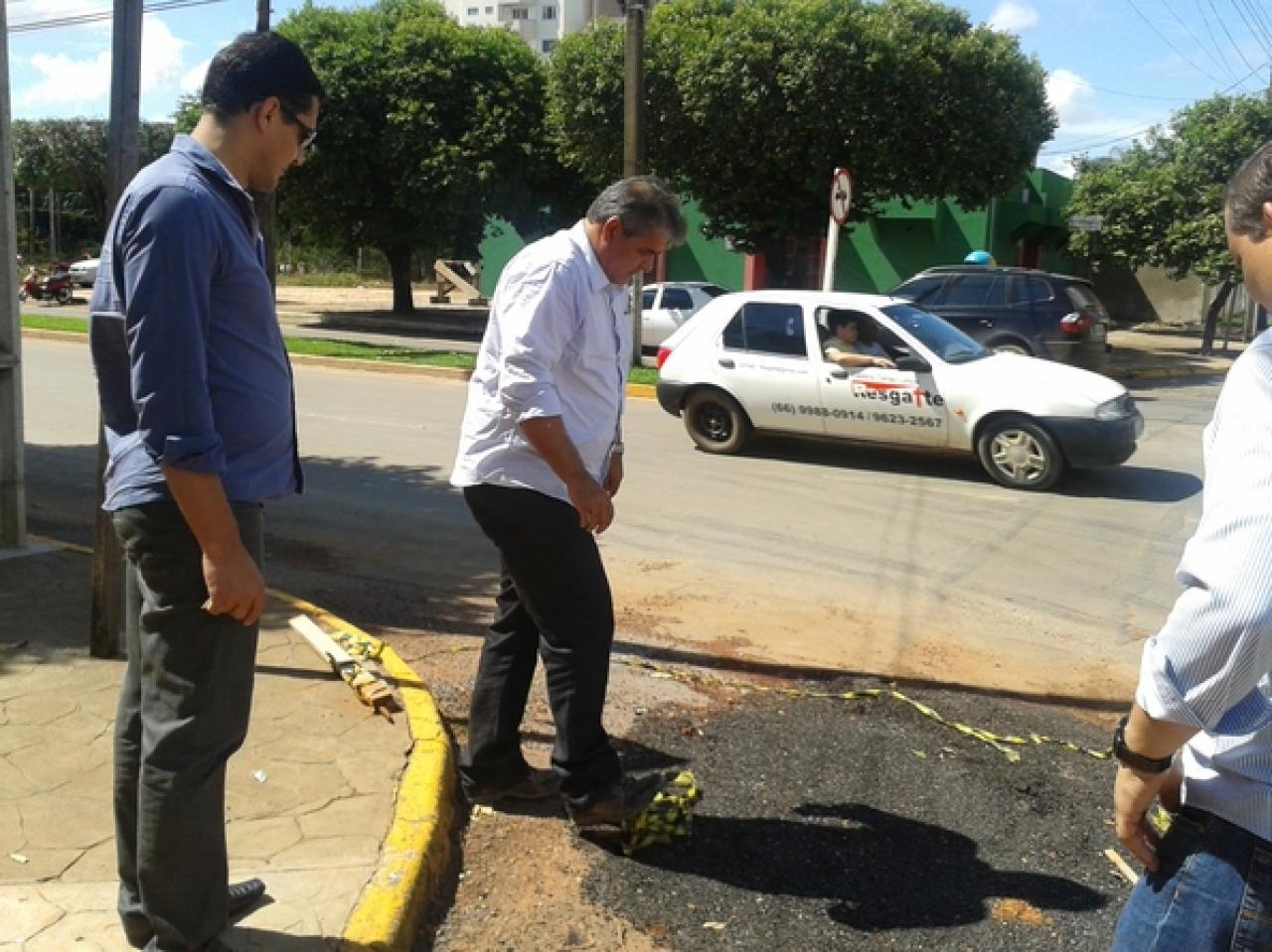 O vereador Claudio Oliveira (PR), juntamente com técnicos da empresa, esteve visitando alguns pontos da cidade e verificaram que não está sendo compactado corretamente o solo, e com o tráfego de veículos o terreno sede, danificando a manta asfáltica.