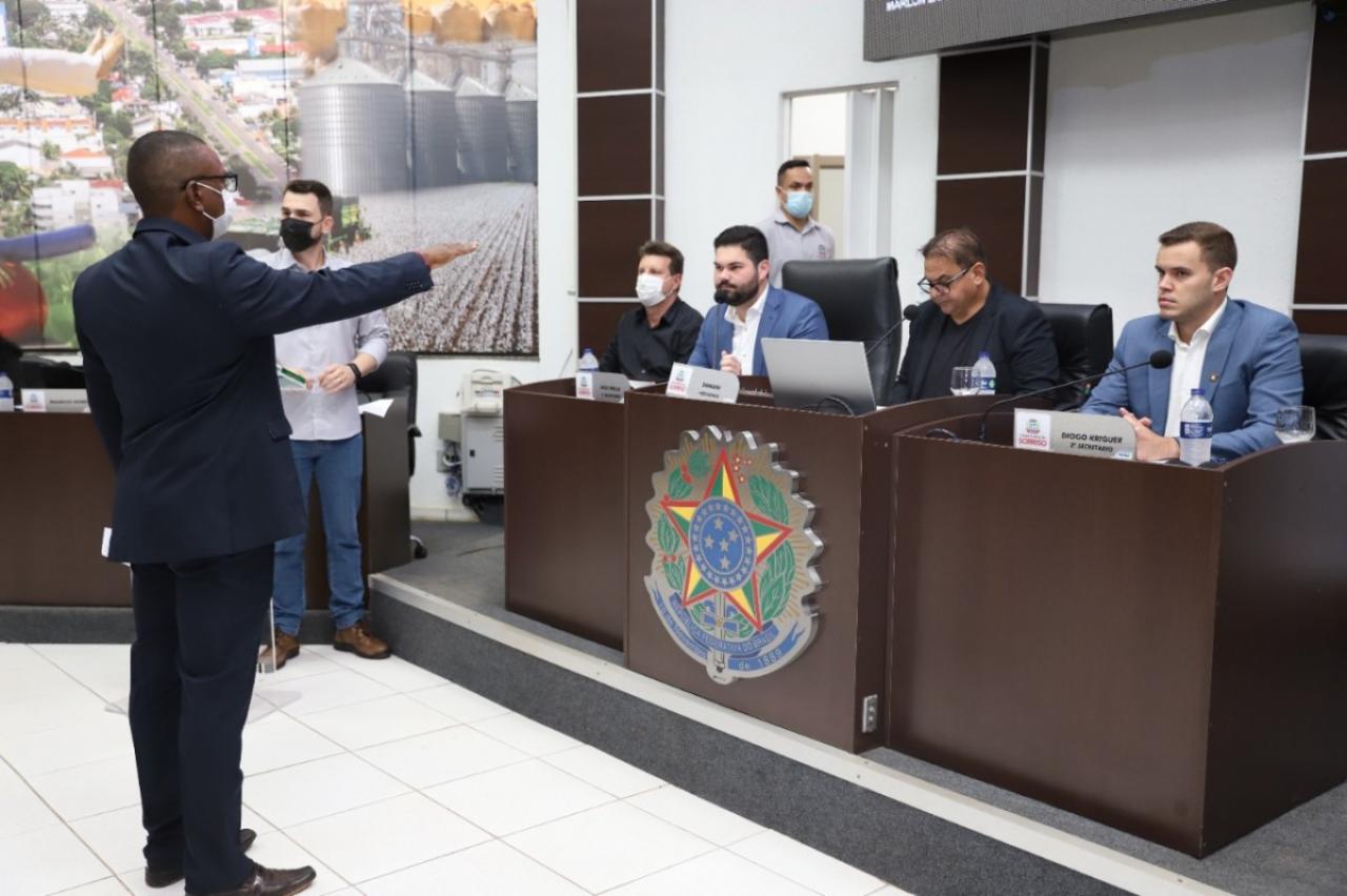 O suplente de vereador Olenil de Boa Esperança (Patriota) foi empossado durante sessão plenária da Câmara de Sorriso nesta segunda-feira (07.02).