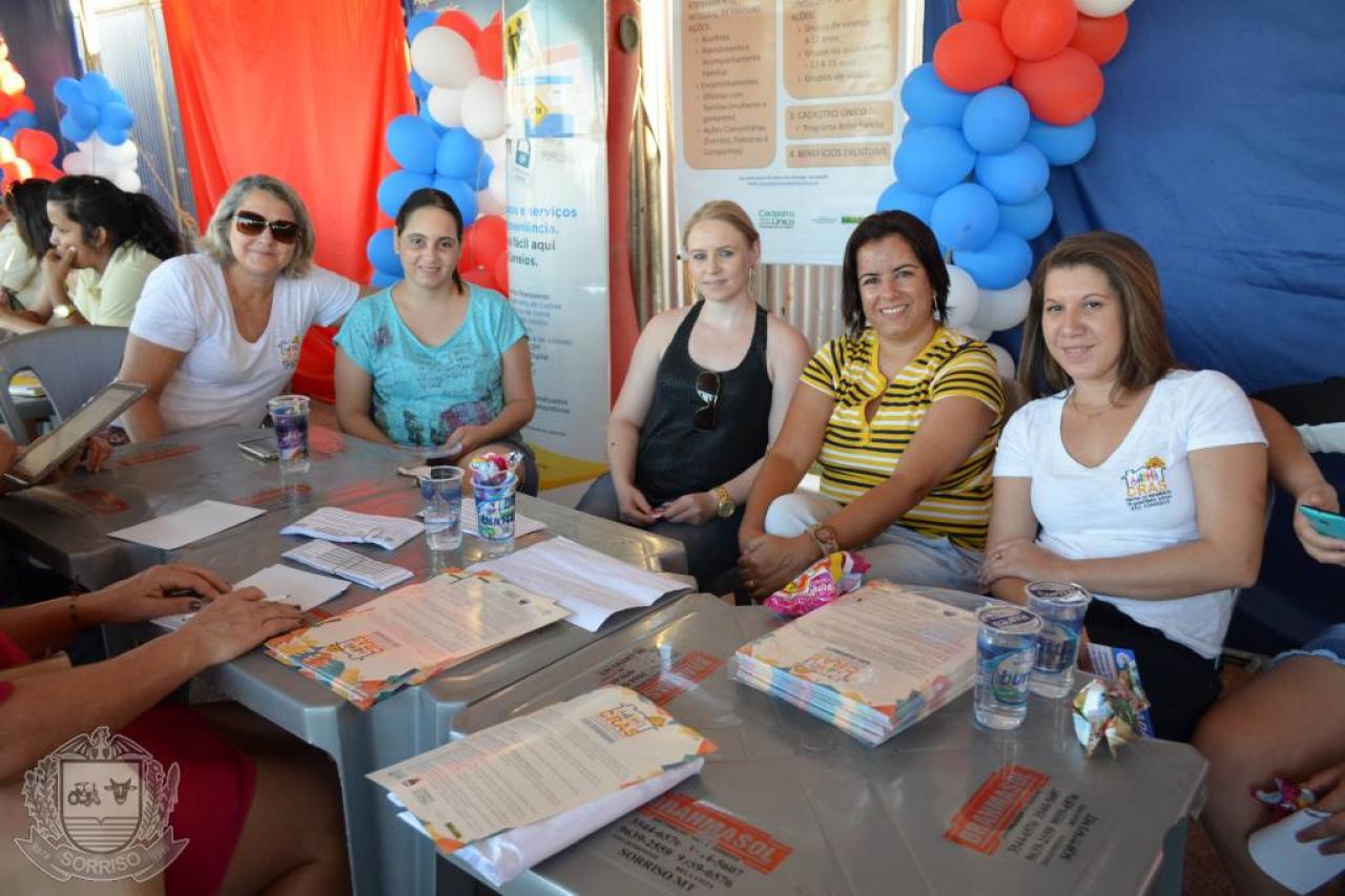 Em uma tarde descontraída foram oferecidos vários serviços sociais como pesagem do Bolsa Família, confecção de CPF pelos Correios, orientação sobre o trânsito feito pelos Agentes Municipais de Trânsito, retirada da segunda via da conta de luz (Energisa) e água (Águas de Sorriso).