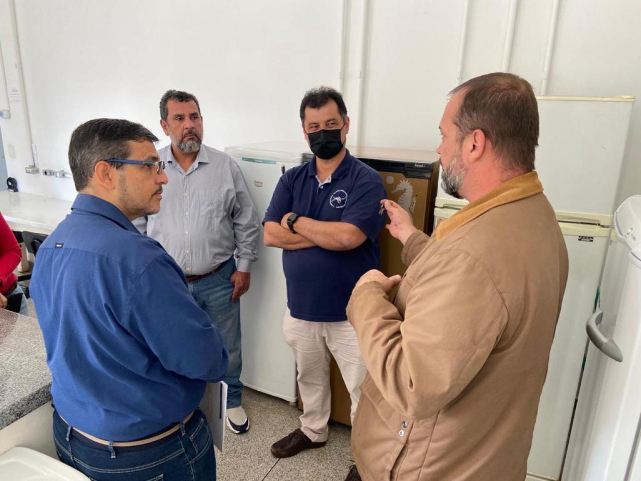 Na manhã da última terça-feira (24), o vereador Rodrigo Machado, acompanhado do secretário adjunto de Saúde e Saneamento de Sorriso, Devanil Barbosa, estiveram na Universidade Estadual de Londrina (UEL), no Departamento de Biologia Animal e Vegetal, do Centro de Ciências Biológicas (CCB), onde conheceram as ações de monitoramento e controle desenvolvidos por pesquisadores da instituição, que serve para o controle do mosquito Aedes aegypti.