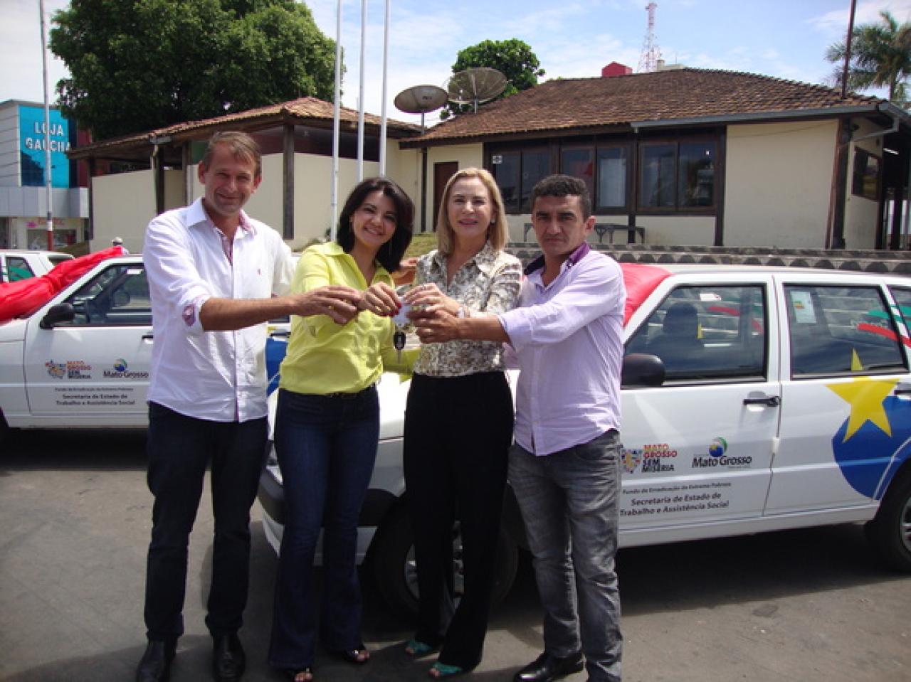 A entrega foi feita a secretária de Assistência Social, Cátia Regina Randon Rossato. Os veículos foram adquiridos com recursos do Fundo Estadual de Erradicação da Pobreza e oferecidos pela Secretaria Estadual de Trabalho e Assistência Social, por meio do Programa Mato Grosso Sem Miséria.