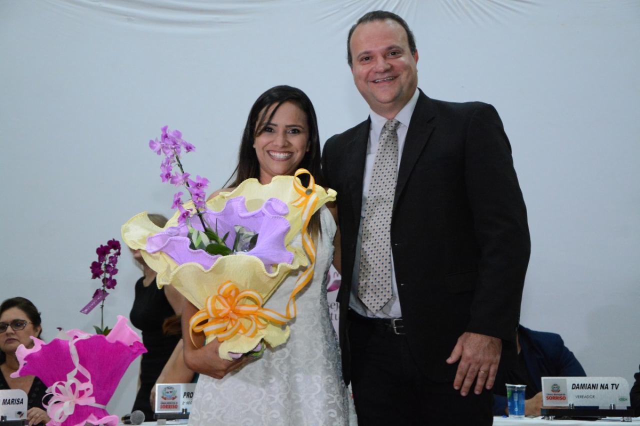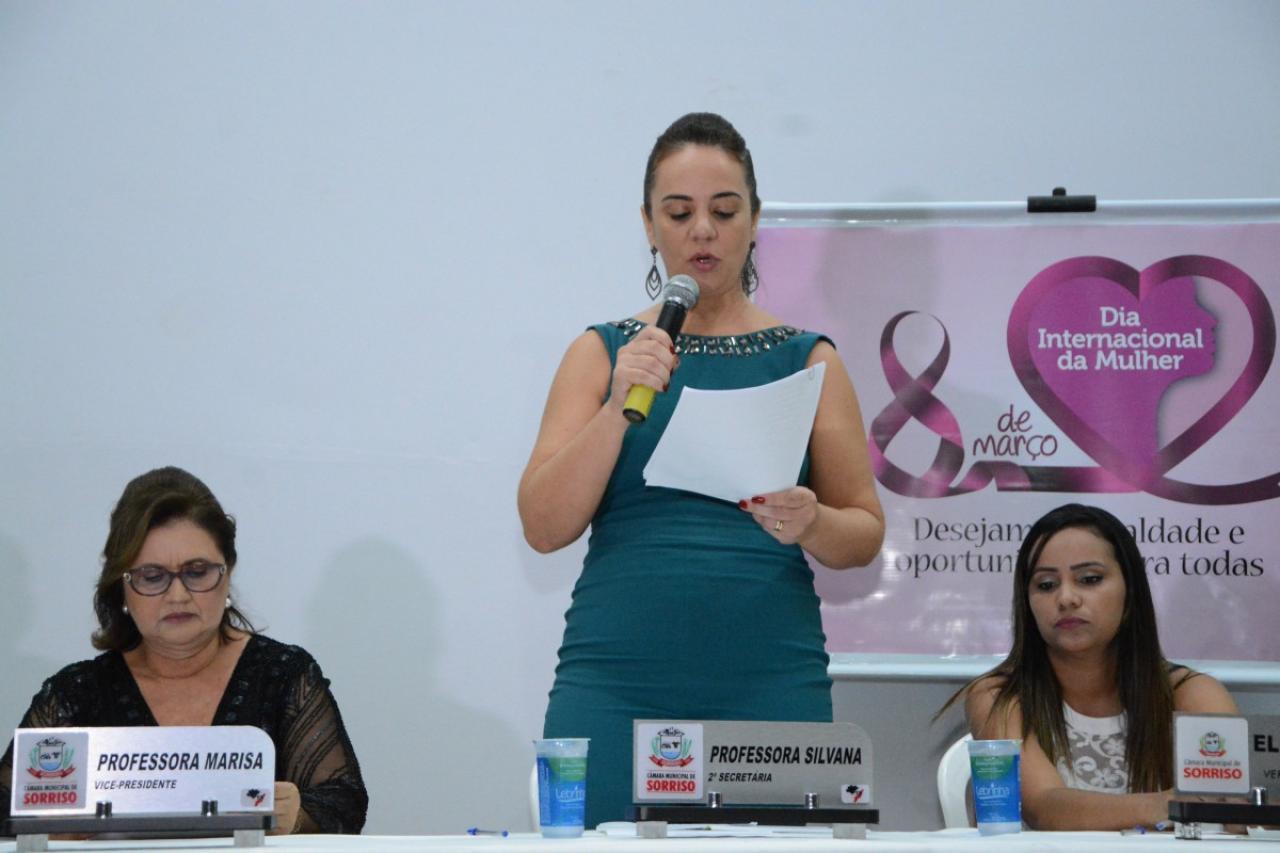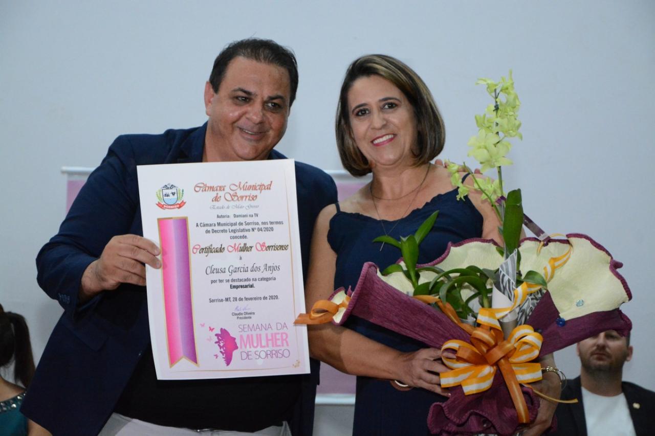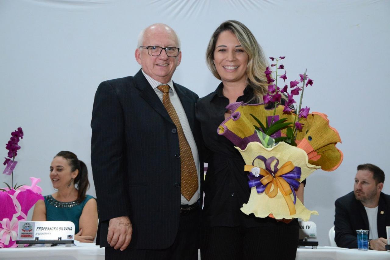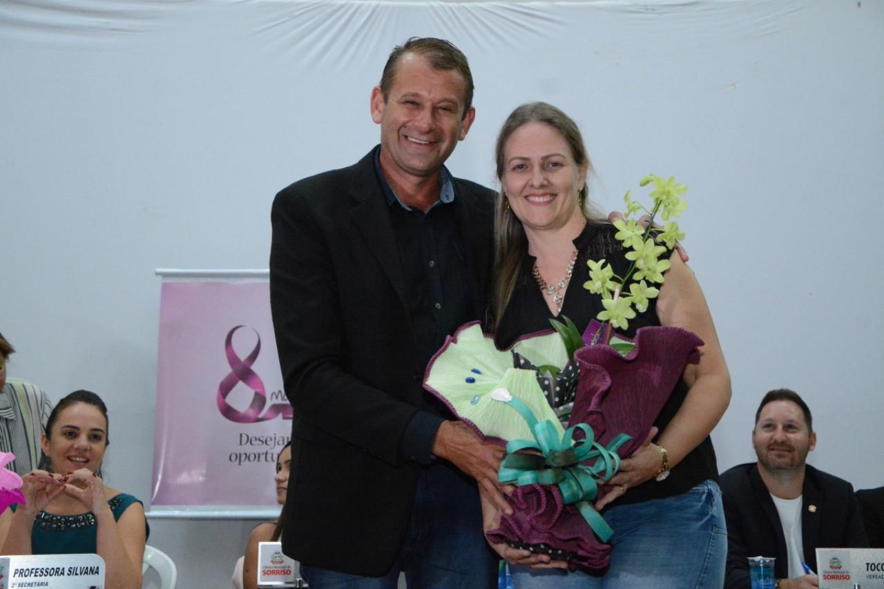 Para comemorar o Dia Internacional da Mulher, a Câmara Municipal de Sorriso realizou na noite de ontem (04.03), no Centro de Eventos Ari José Riedi, sua tradicional sessão solene para entrega de honrarias às mulheres sorrisenses nas categorias empresarial, assistencial, cultural, funcionária pública, função pública e educacional.