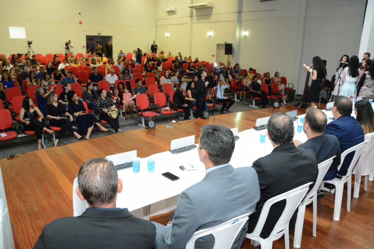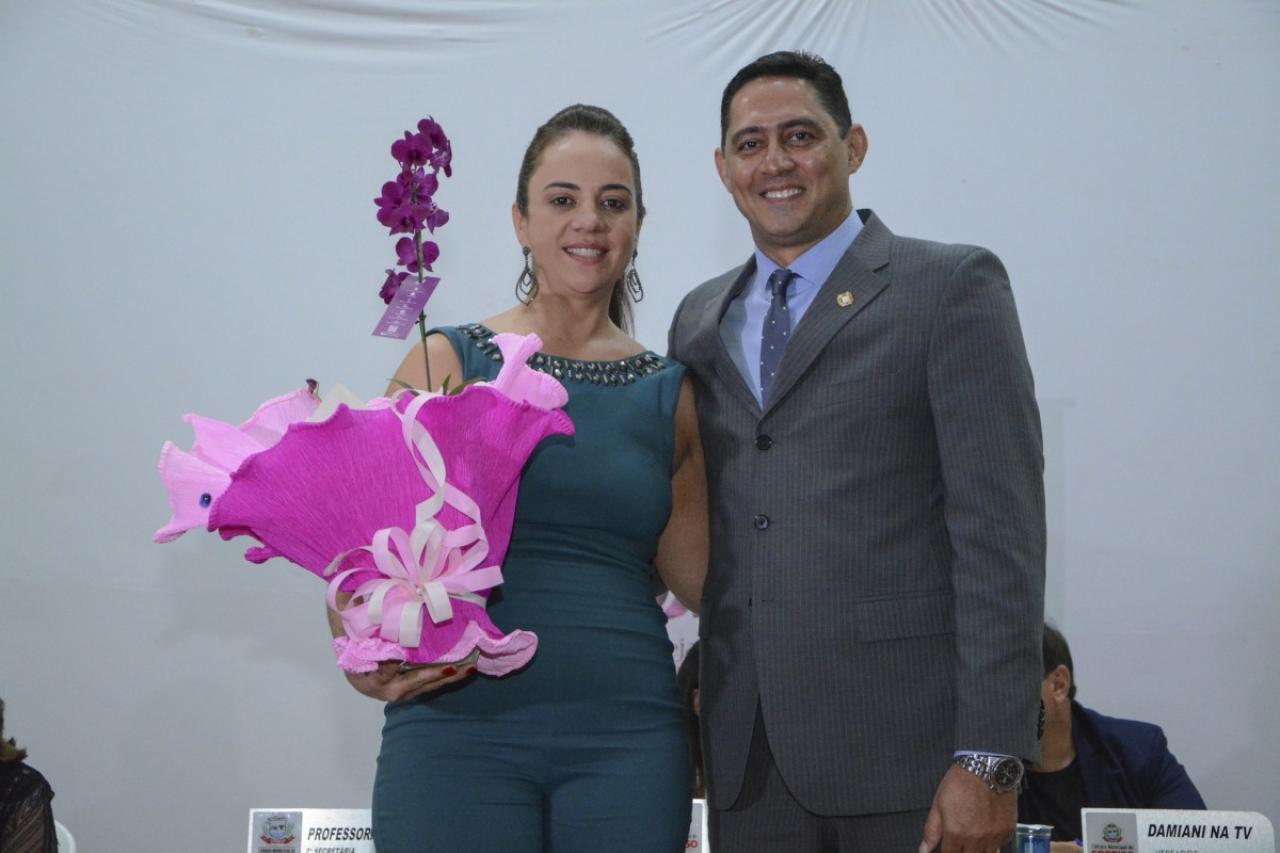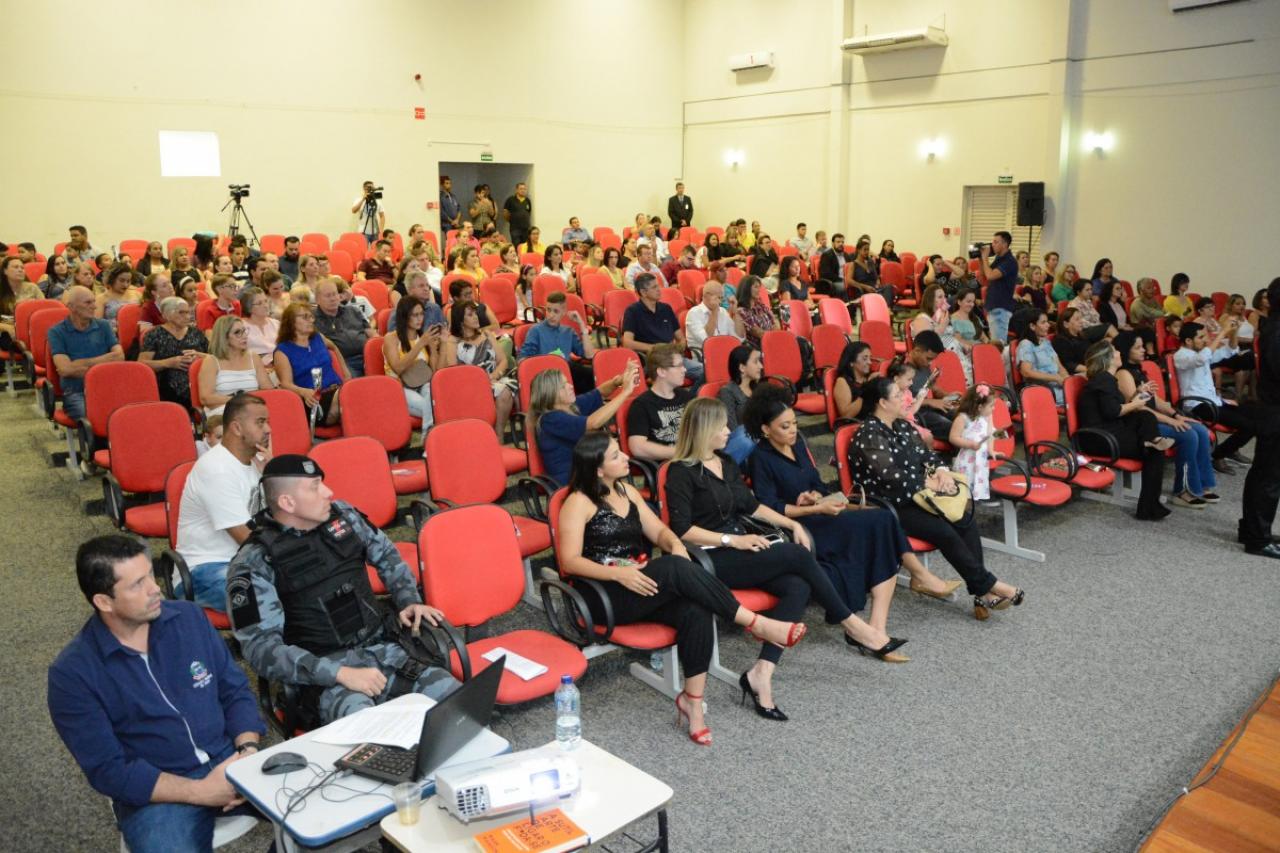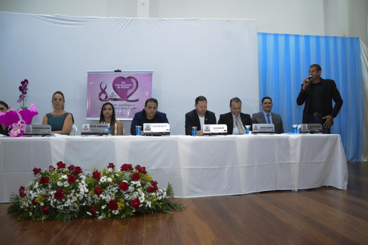 A sessão solene foi conduzida pela vereadora Professora Silvana (PTB) e contou com a presença do juiz Anderson Candiotto e do vice-prefeito Gerson Bicego.