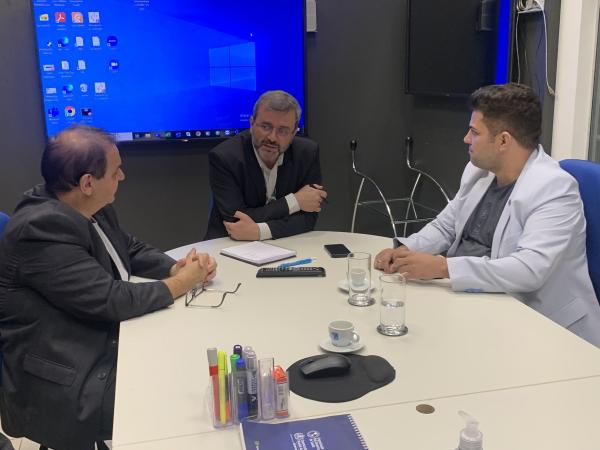 Os vereadores Damiani da TV e Mauricio Gomes participaram nesta quarta-feira, 26, em Brasília, de uma reunião com o Secretário de Atenção Primária à Saúde, Nésio Fernandes de Medeiros Jr., sobre o programa Mais Médicos.