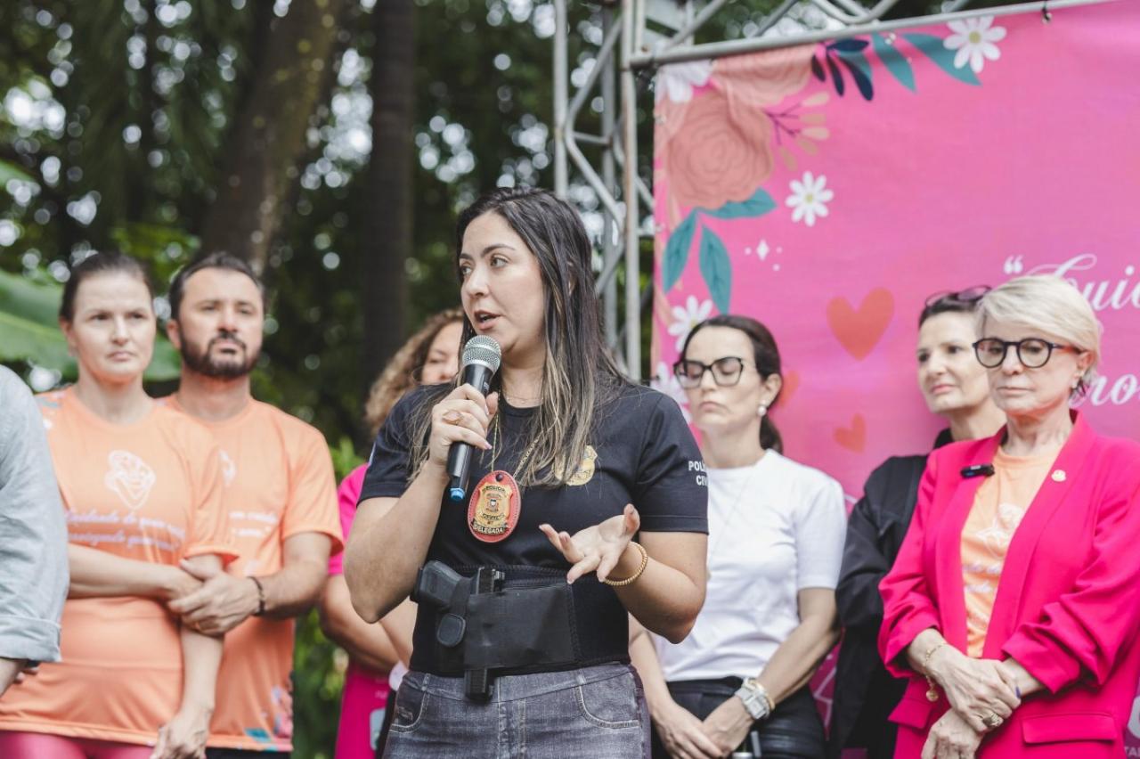 O evento, liderado pela Secretaria Municipal da Mulher, contou com a presença do prefeito Alei Fernandes, da secretária Mara Fernandes, da senadora Margareth Buzetti, do deputado estadual Beto Dois a Um, do vereador Diogo Kriguer, além de integrantes do sistema de Justiça, como a delegada Jessica Assis, a promotora Fernanda Pavilec, os juízes Anderson Candioto, Rafael Paniquer e Emanuelle Navarro, e a desembargadora Maria Erotides.