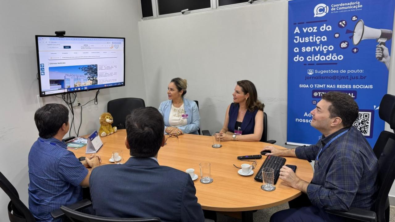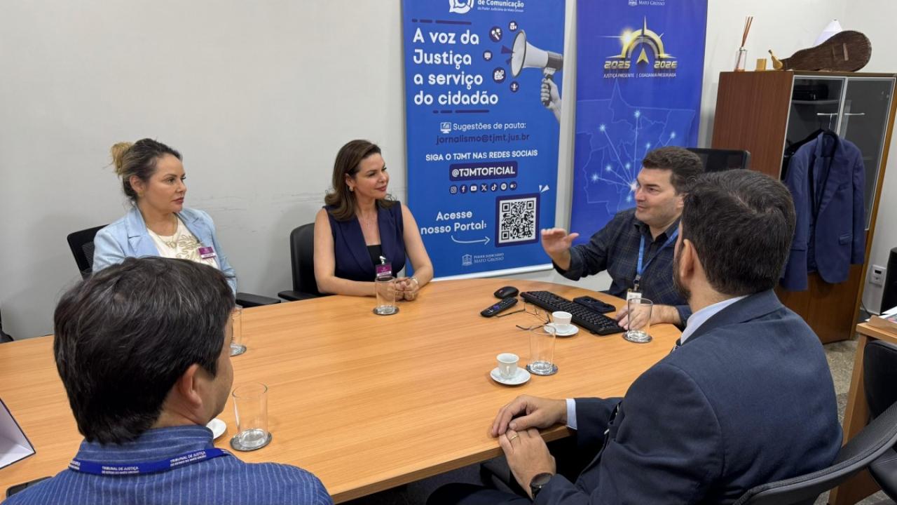 A equipe foi recebida pelo coordenador de Comunicação do TJMT, Ranniery Queiroz, e pelo diretor de Imprensa e Novas Mídias, Álvaro Marinho, que apresentaram o funcionamento do setor, os projetos sociais desenvolvidos pela instituição e as estratégias adotadas na divulgação das ações do Judiciário mato-grossense à sociedade.