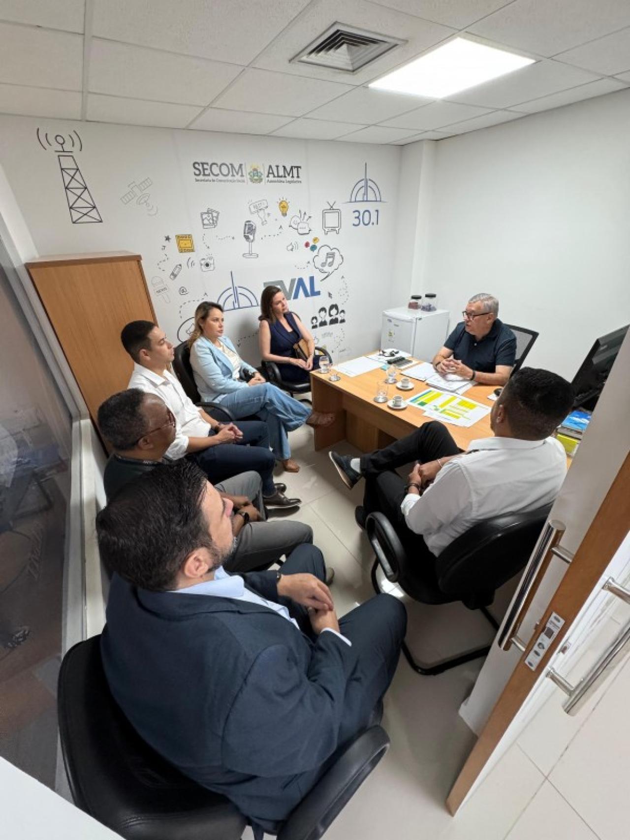 Para se inteirar do programa, o presidente da Câmara de Sorriso, Rodrigo Matterazzi, acompanhado do vereador Brendo Braga, participou de uma reunião com o superintendente da TV Assembleia, Jaime Neto, nessa quinta-feira, 10, em Cuiabá. Também estiveram presentes os servidores Eloísa Denardi (coordenadora de Comunicação Social), Ângela Gimenez (jornalista) e Dr. Fernando Mascarello (assessor especial).