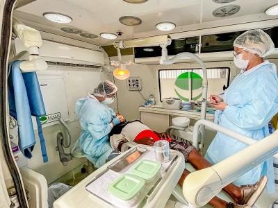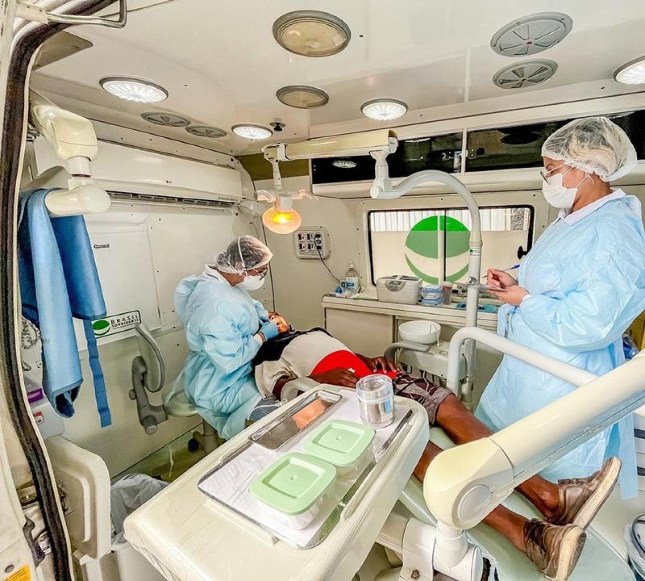 A Unidade Odontológica Móvel é equipada com cadeira odontológica, compressor, autoclave, iluminação adequada e todos os instrumentos necessários para a realização de procedimentos como limpeza, restauração, extrações simples e orientações de higiene bucal. Além disso, permite ações educativas e de prevenção em escolas e comunidades.