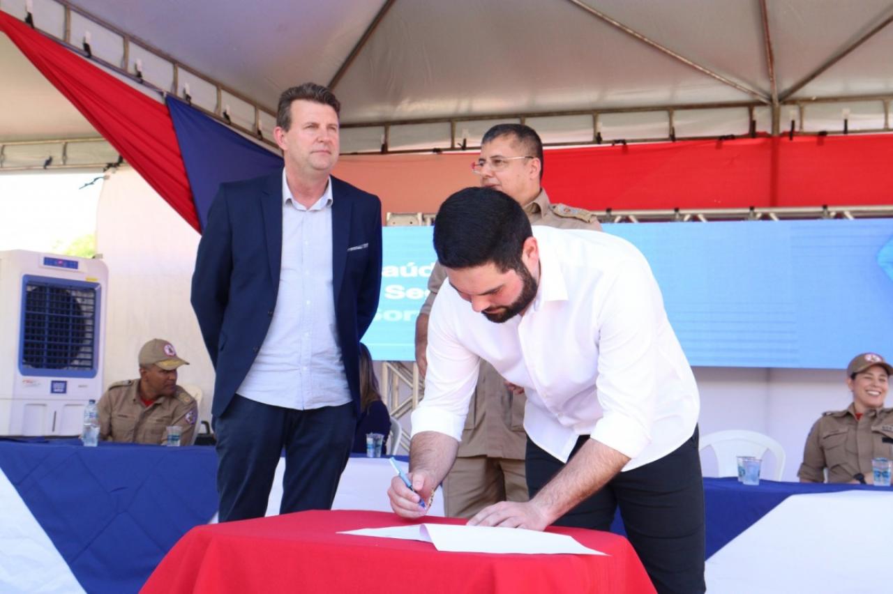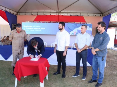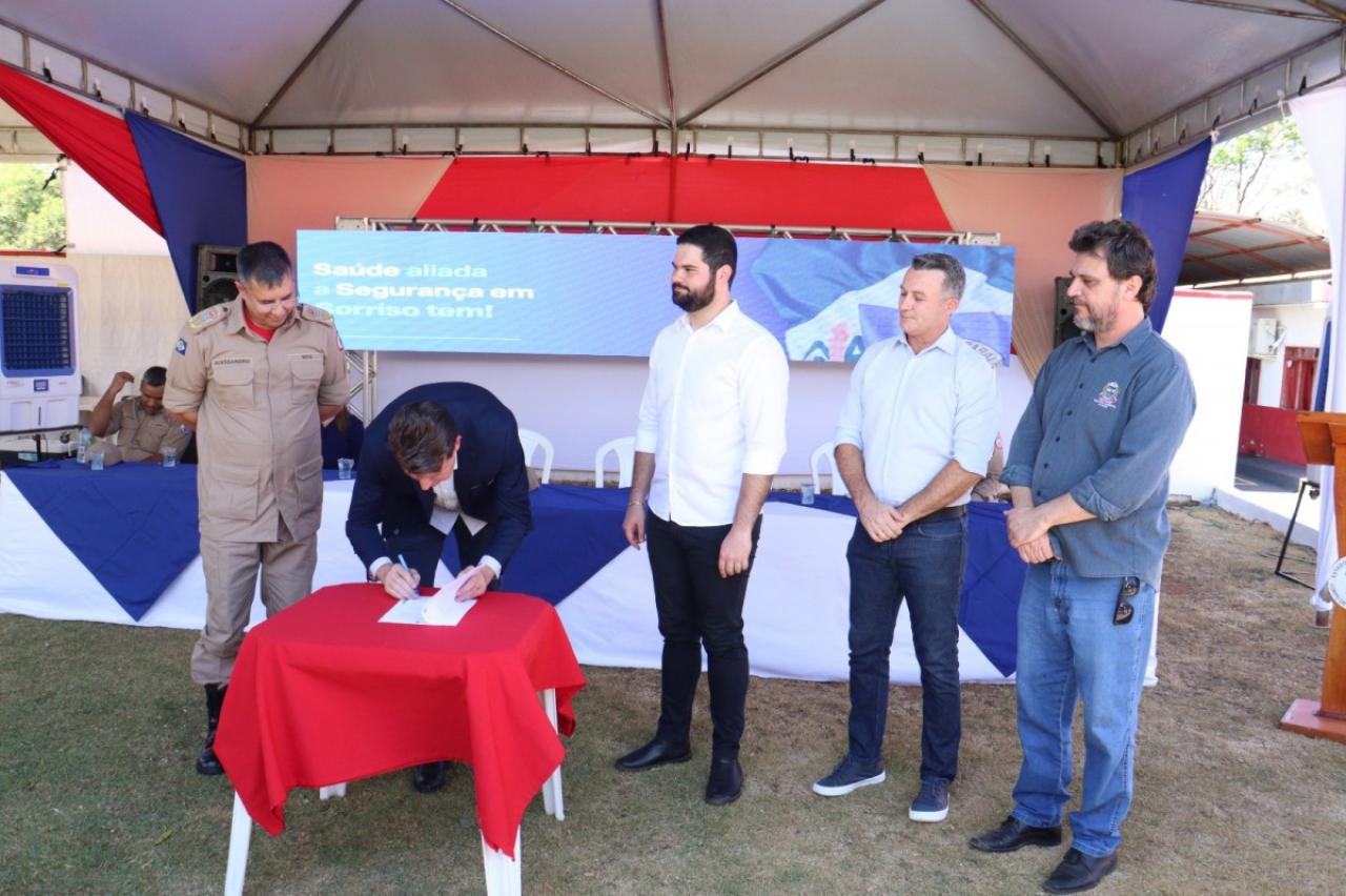 O presidente da Câmara Municipal de Sorriso, Iago Mella e os vereadores Zé da Pantanal, Celso Kozak, Diogo Kriguer, Chico da Zona Leste e Wanderley Paulo participaram nesta manhã (27) da assinatura do termo de cooperação técnica entre a Prefeitura e o Corpo de Bombeiros para que o Município passe a integrar a Central Regional de Regulação de Atendimento Pré-Hospitalar do CRBM III e com isso a instalação de unidades avançadas do Corpo de Bombeiros em Sorriso.