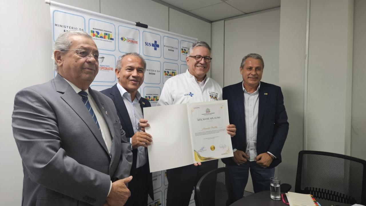 Na oportunidade o vereador entregou para o ministro a Moção de Apaluso, pelos relevantes serviços prestados para a saúde pública de Sorriso.