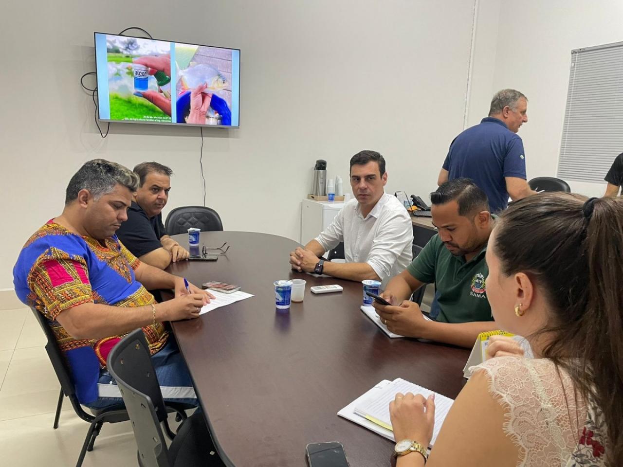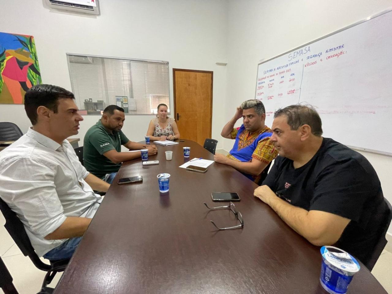 Os vereadores Leandro Damiani e Maurício Gomes se reuniram, nesta quinta-feira (10), com o secretário municipal de Agricultura Familiar e Segurança Alimentar, Marlon Zanella, para debater questões relacionadas ao abatedouro de aves, incubadora de empresas e o Assentamento Pé no Chão.